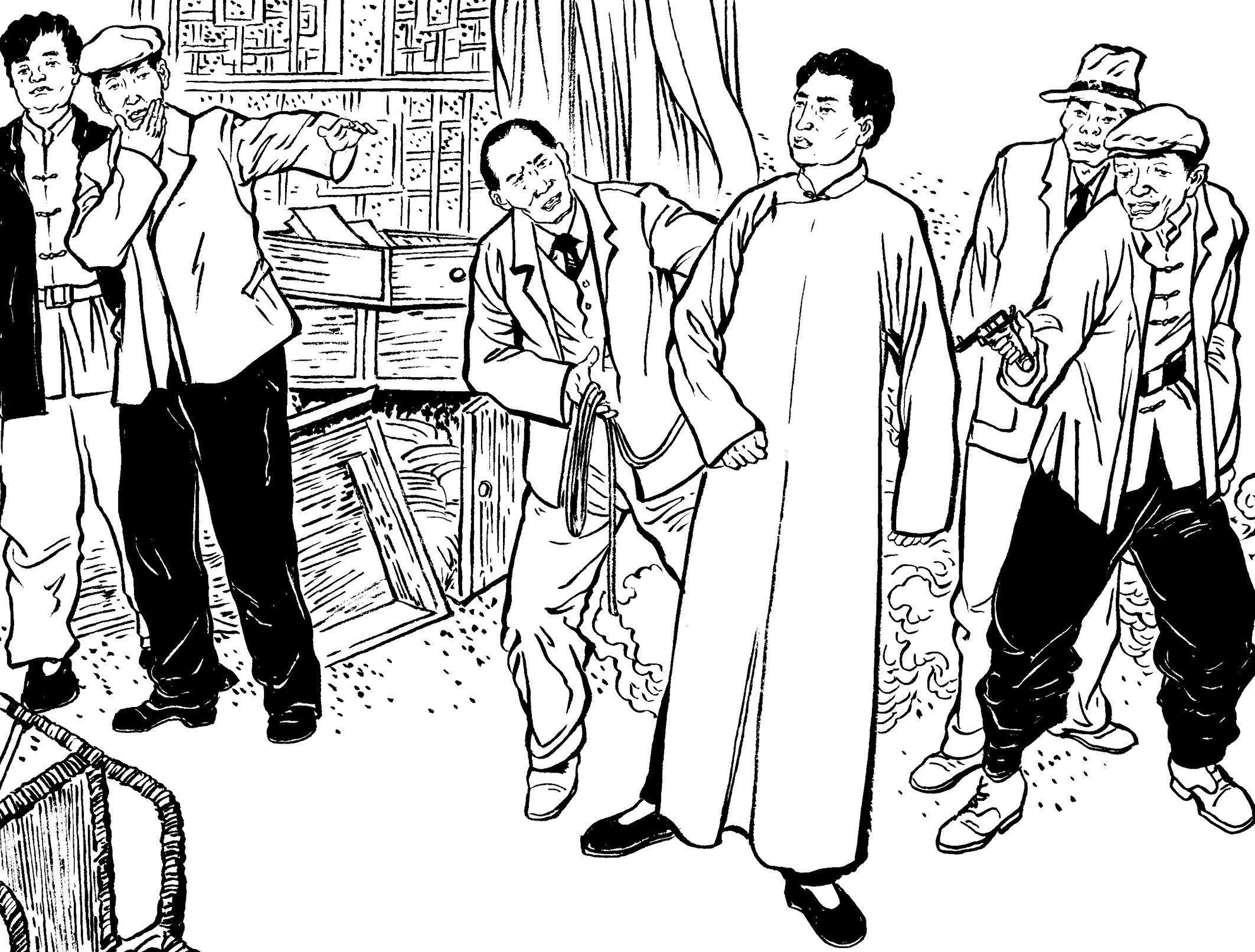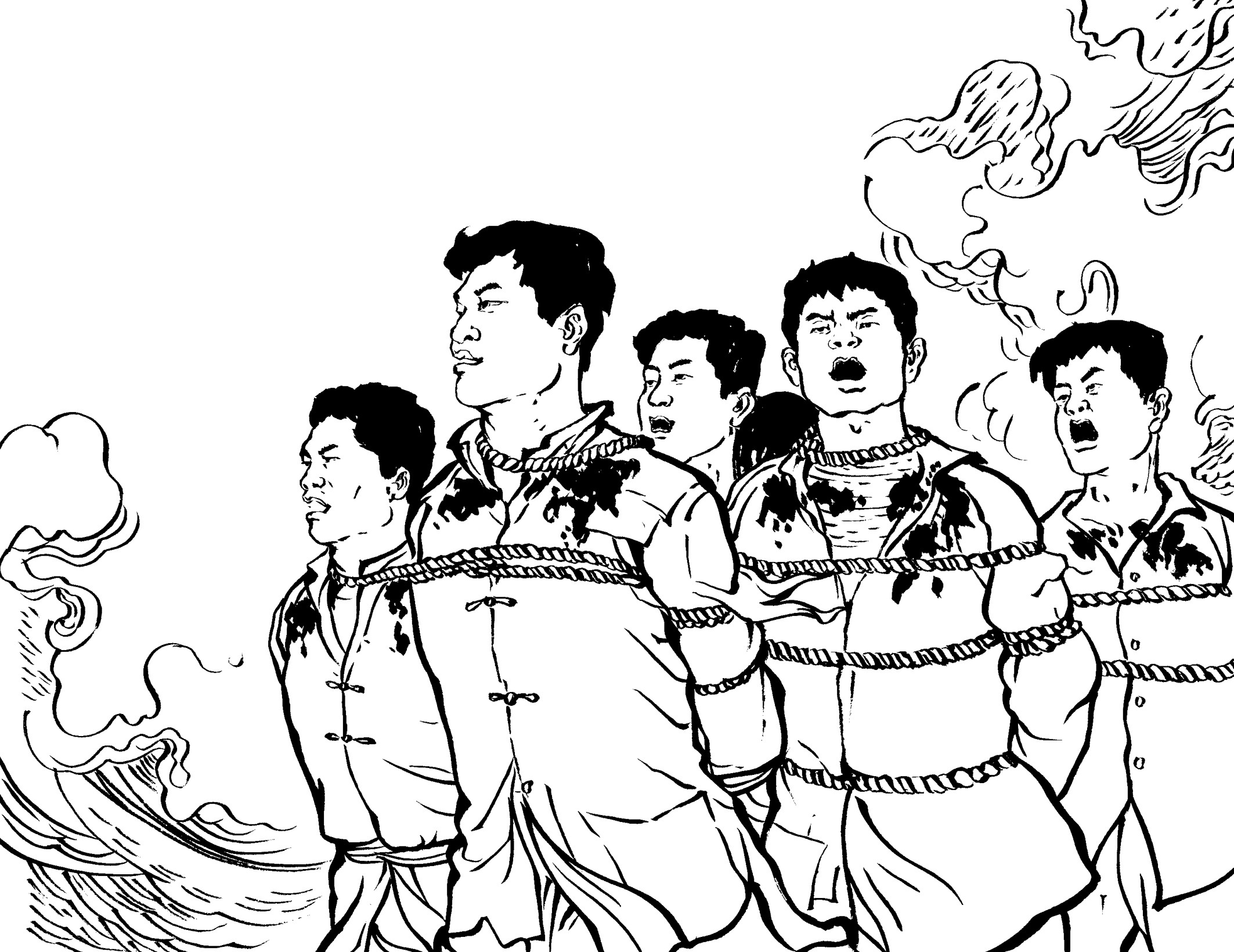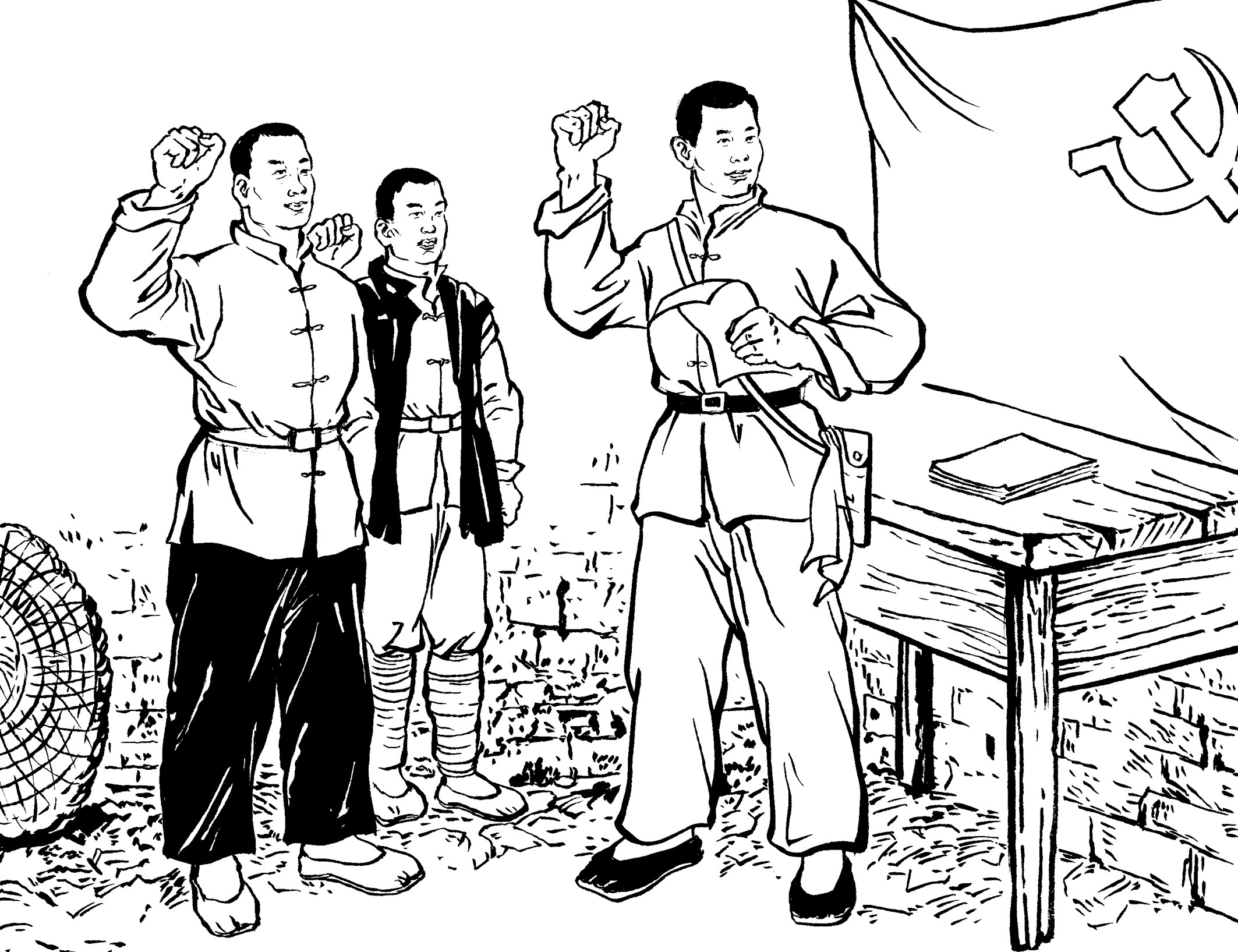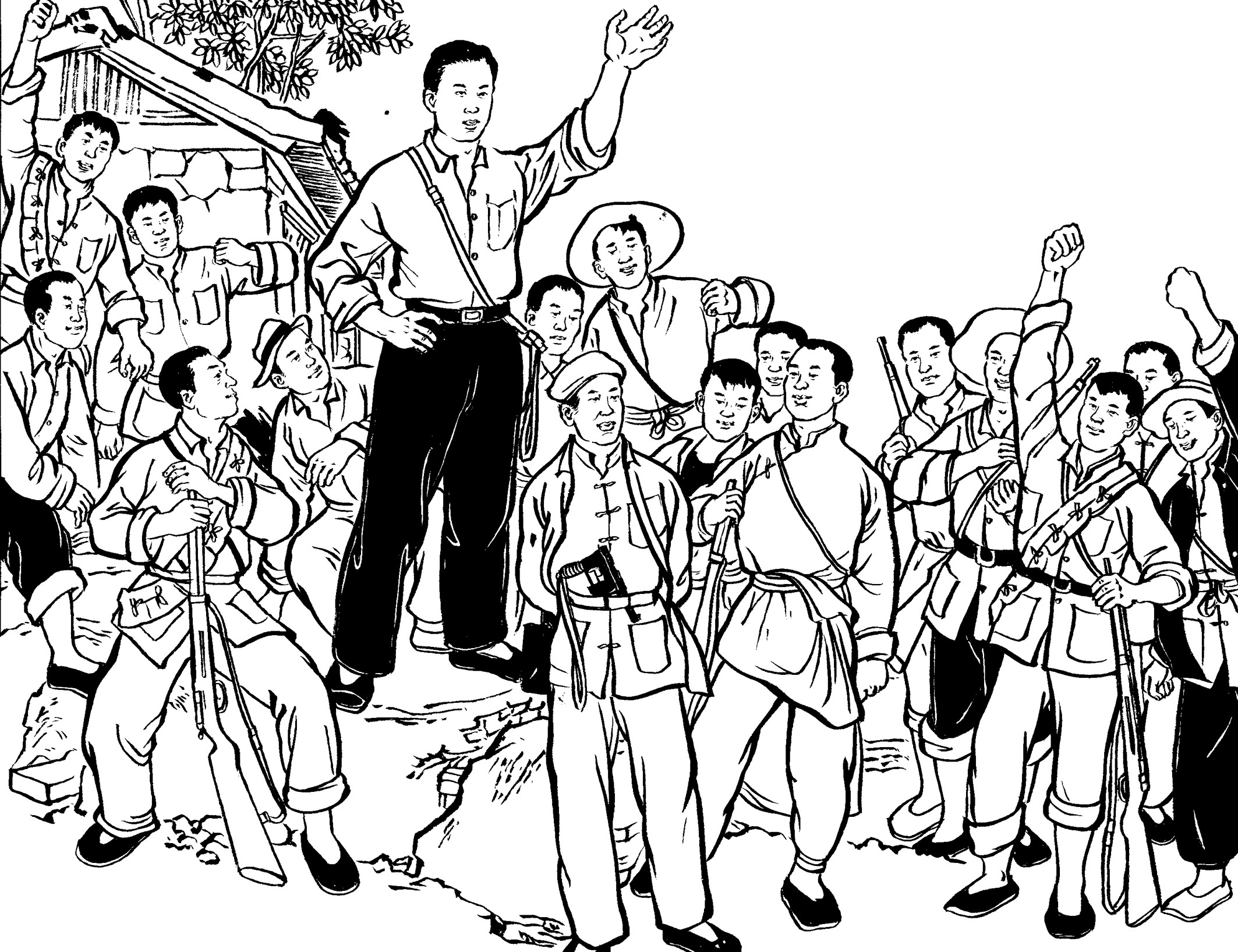 41. 国民党为了快速补充兵源,公开进村入户大量抓捕壮丁,只要看见十五六岁以上的男孩就强行带走。丧心病狂的国民党军队用粗绳捆绑,甚至用细细的铁线穿过壮丁肩膀的锁骨,像赶着一串牲口似的逼着壮丁们往前走。