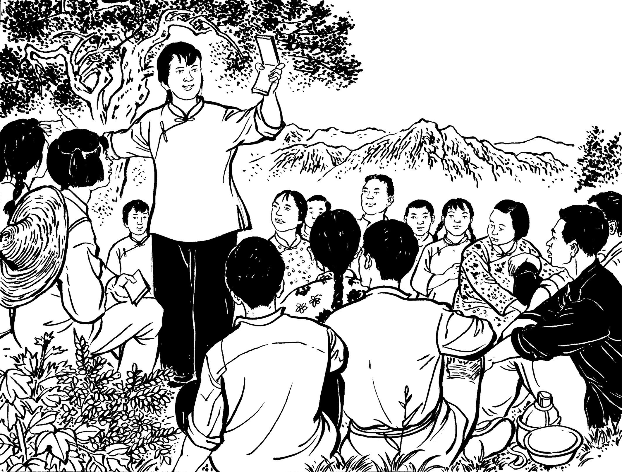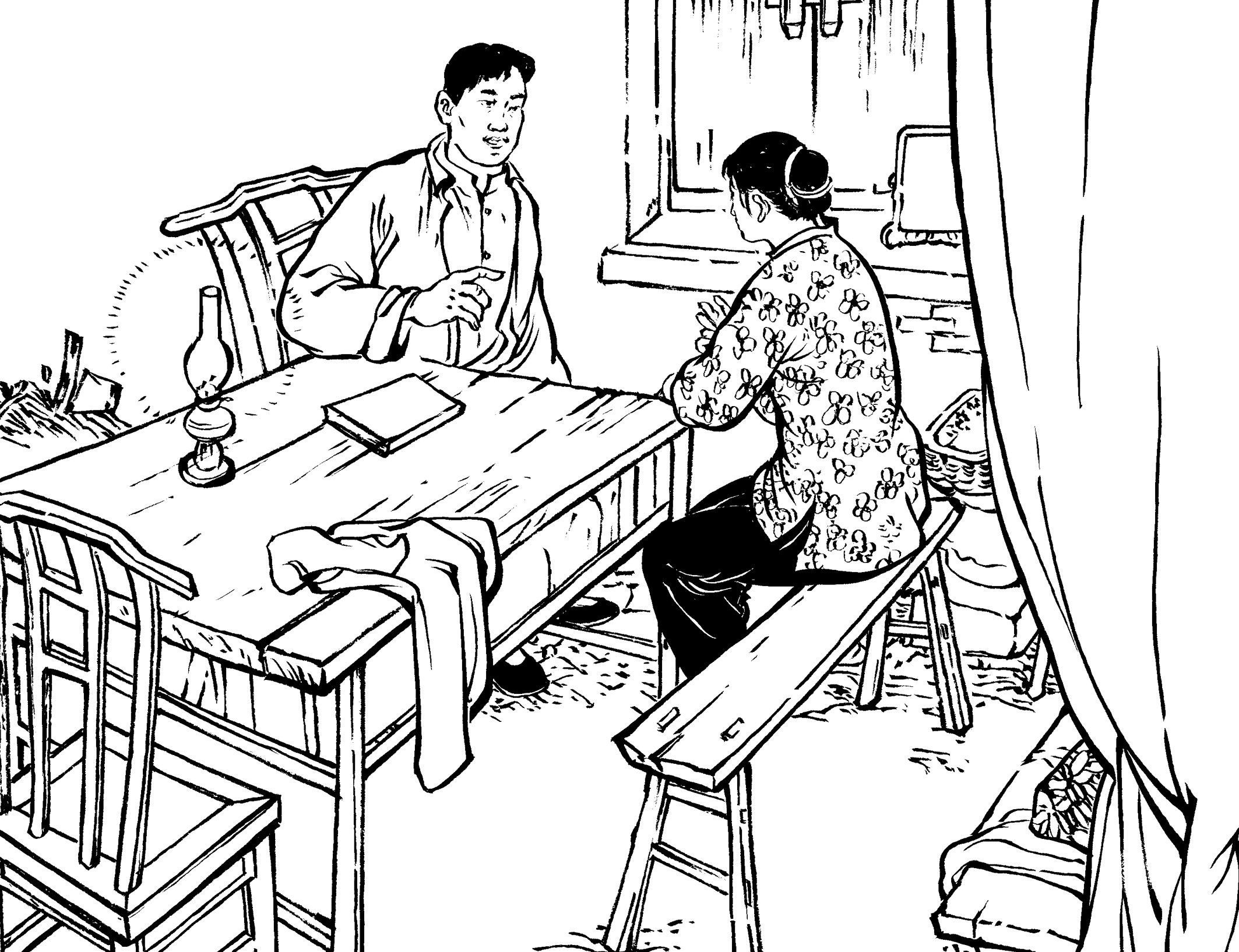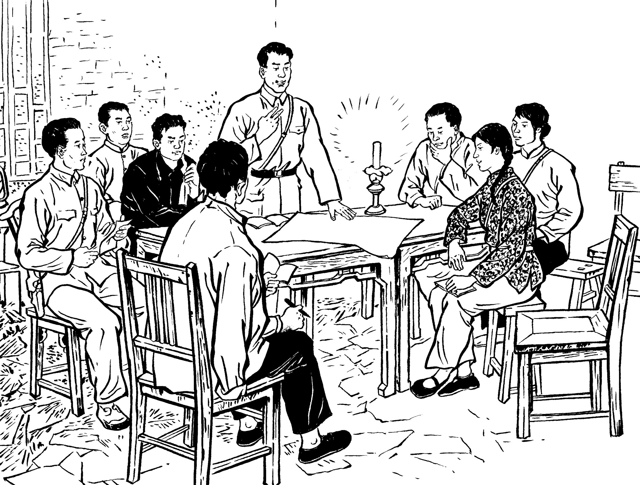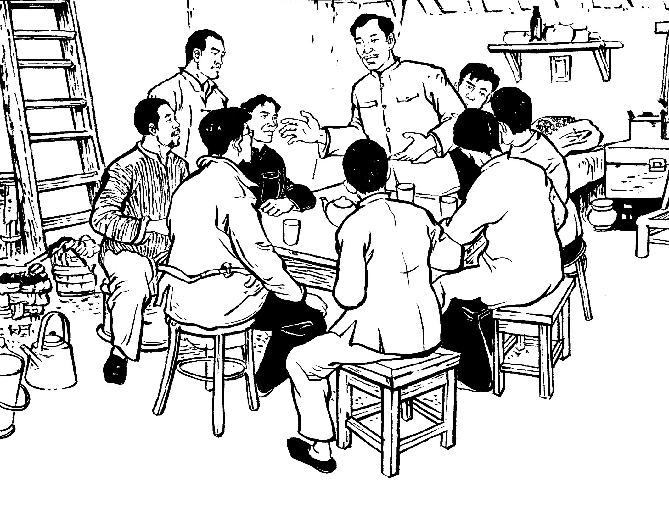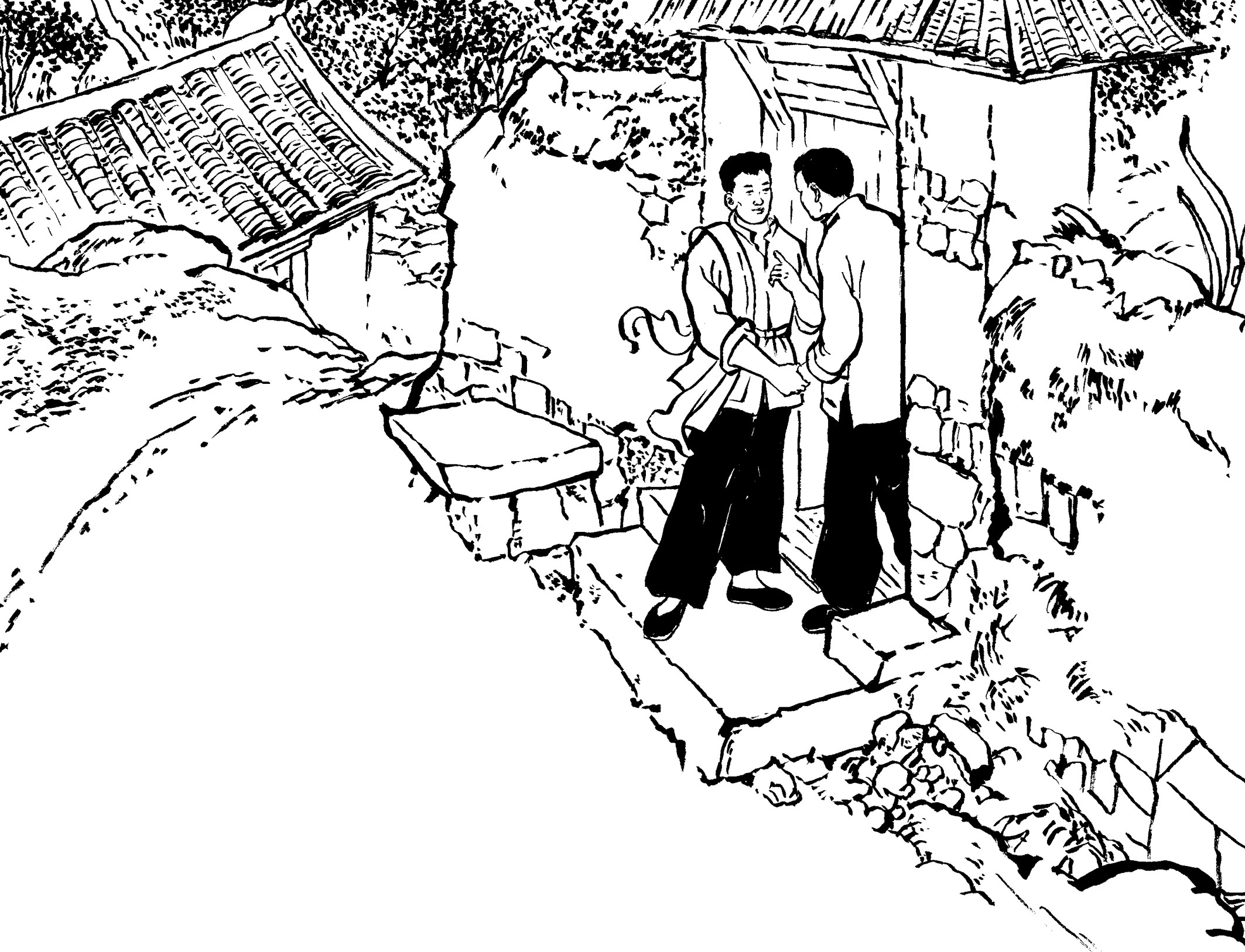 14. 地下党员经常装扮成牛贩、马贩到黄章约家做客,有时一起弹弦唱曲。山里人罕见乐器,清脆的弦声、悠扬的笛音、优美的南曲,吸引了喜好热闹的年轻人。他们扎堆谈天说地,外面新奇精彩的世界令人无限好奇和向往。