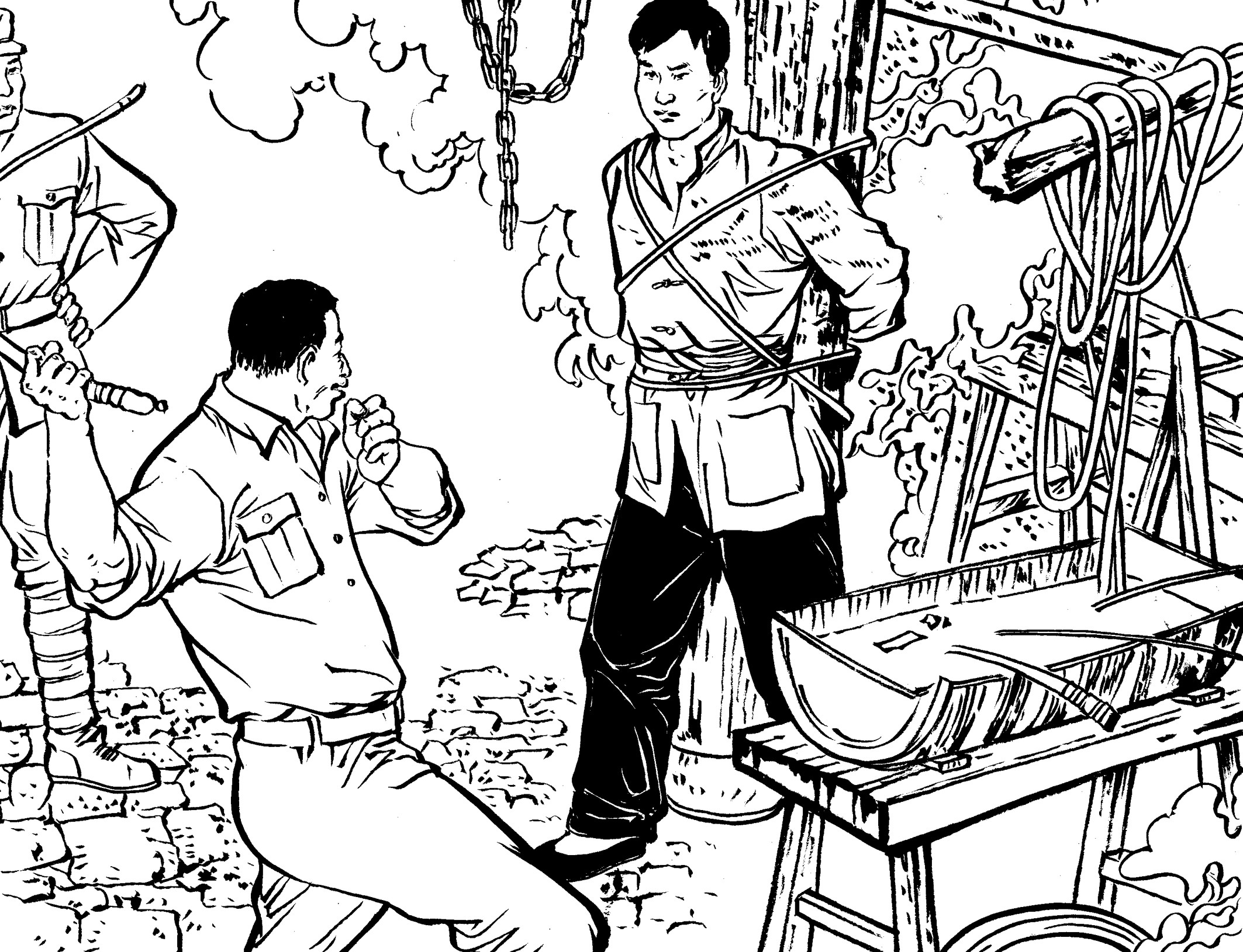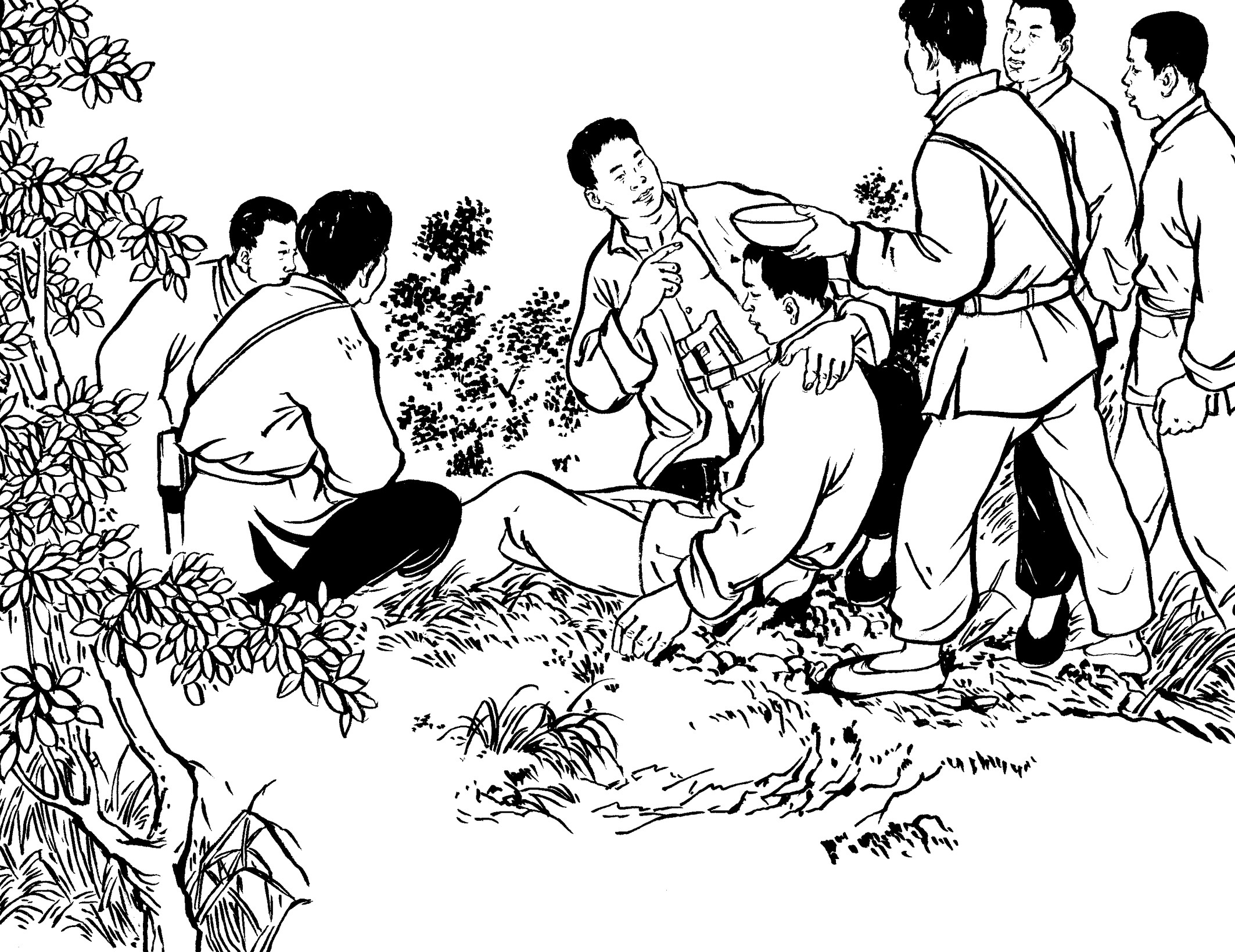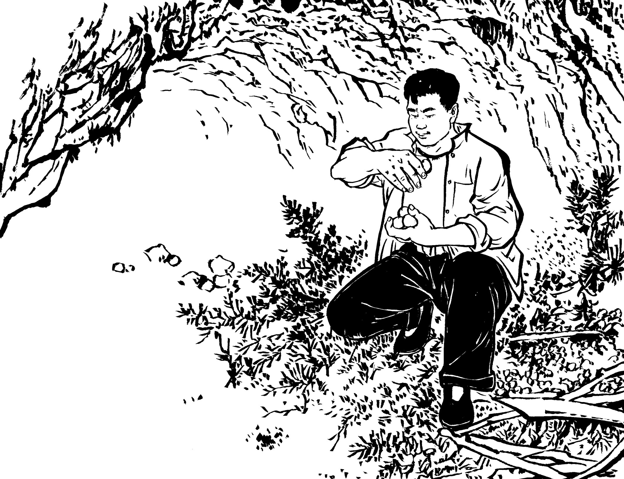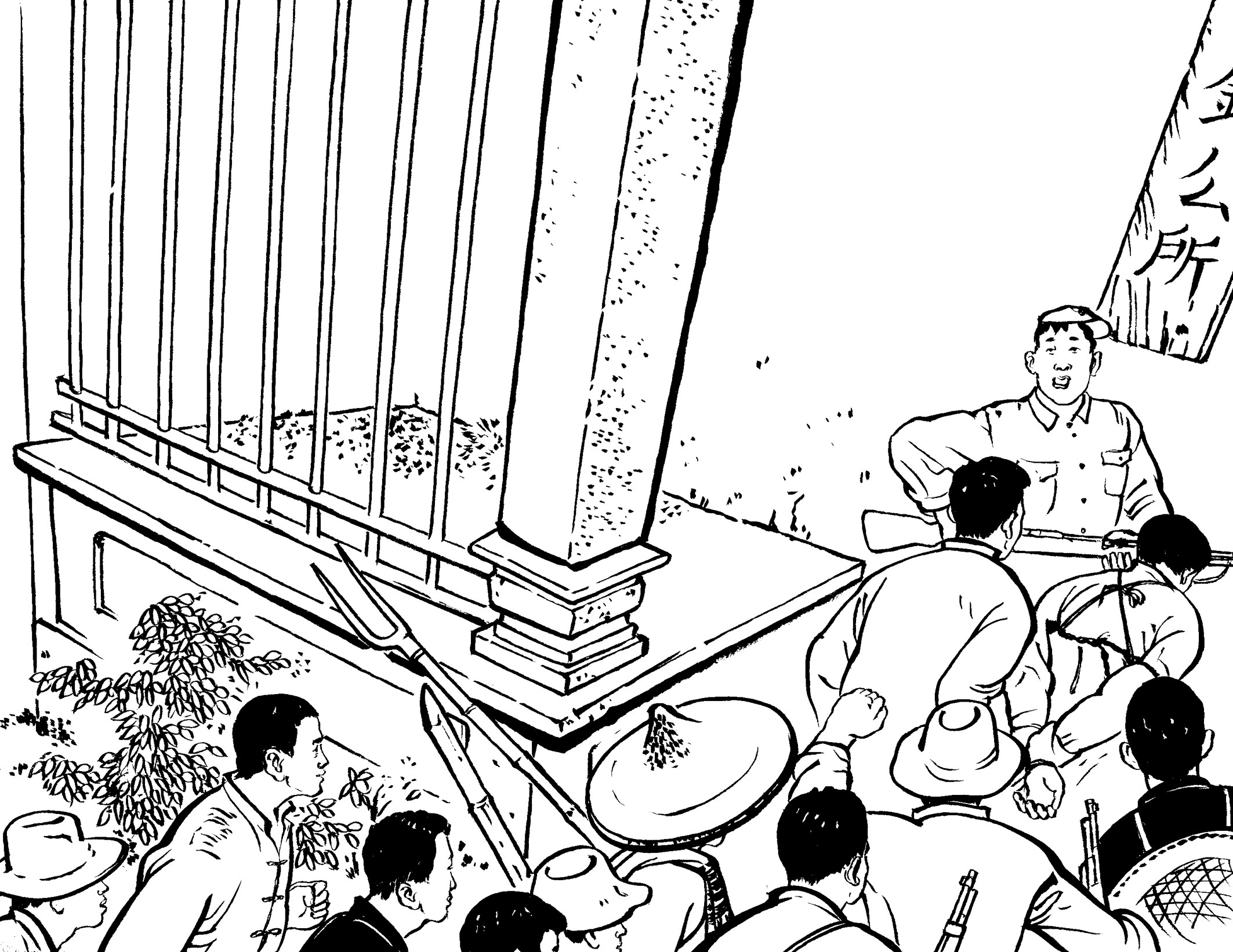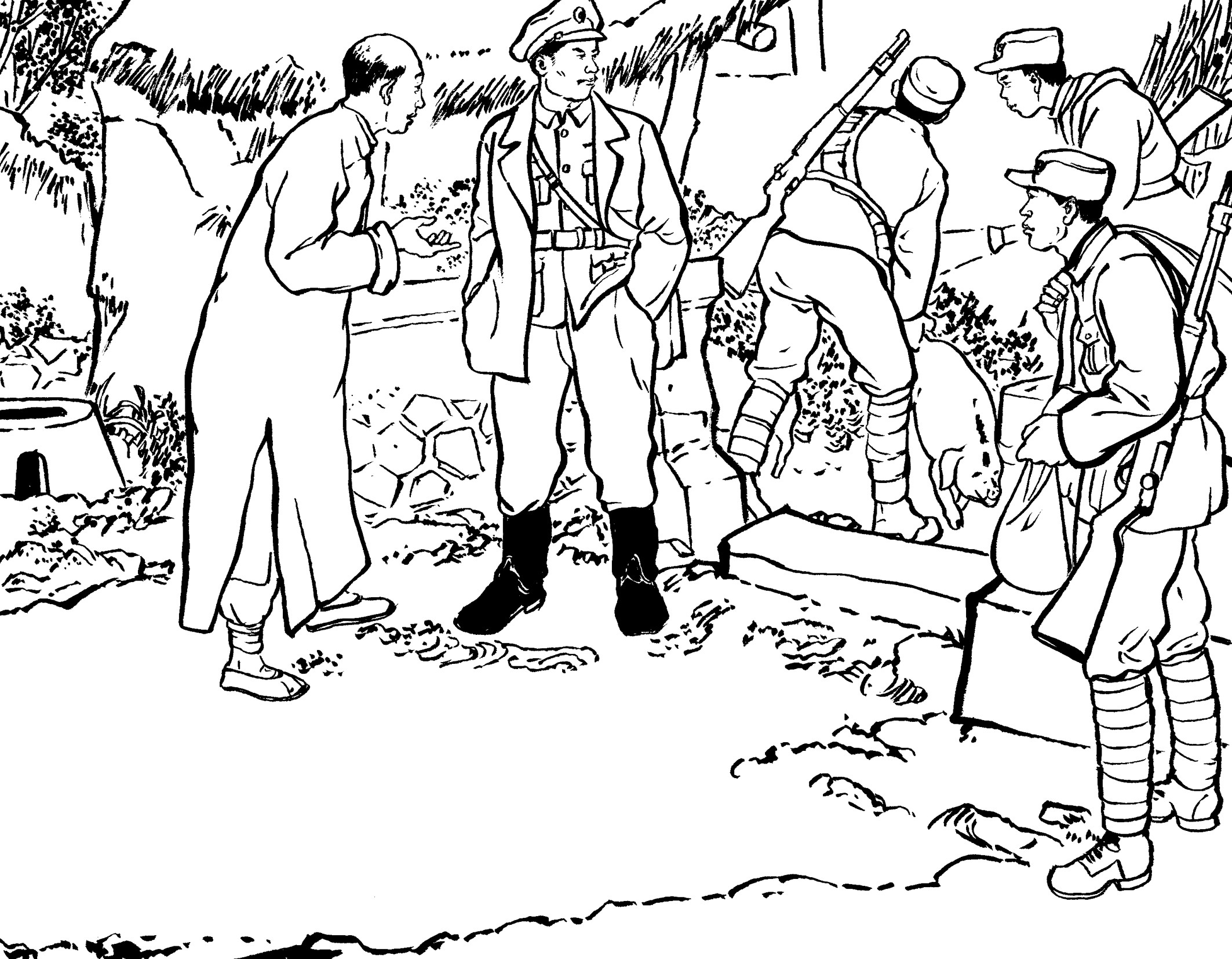 29. 壮汉们提前在草丛中放入捕兽夹,在小道上牵了绳子。国民党军警一进山,有的被绳子绊倒,有的脚被铁夹钳住了,有的当场被击毙,一下子失去了战斗力,剩下的17名士兵全部被抓起来,五花大绑地吊在大松树下拷打。