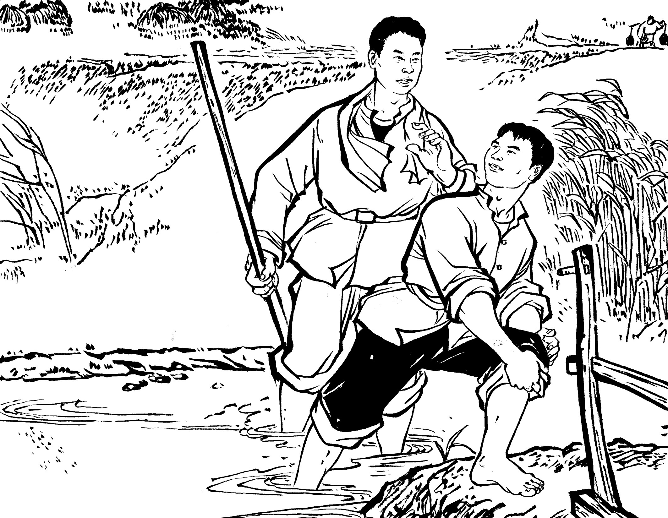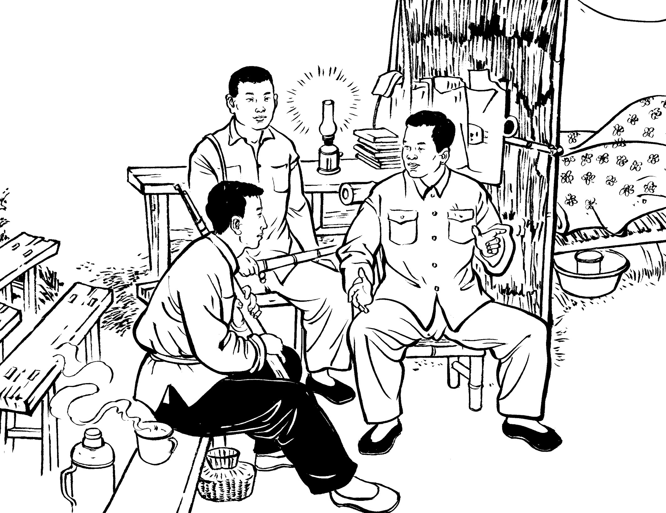54. 收割季节,黄章约的外甥——曾山村年仅16岁的李祖乃,也到舅舅家帮忙。他与19岁的王水法年纪差不多,同睡一个被窝,情同手足,对其开讲的山外故事产生浓厚的兴趣,对其参与革命斗争活动十分崇拜。