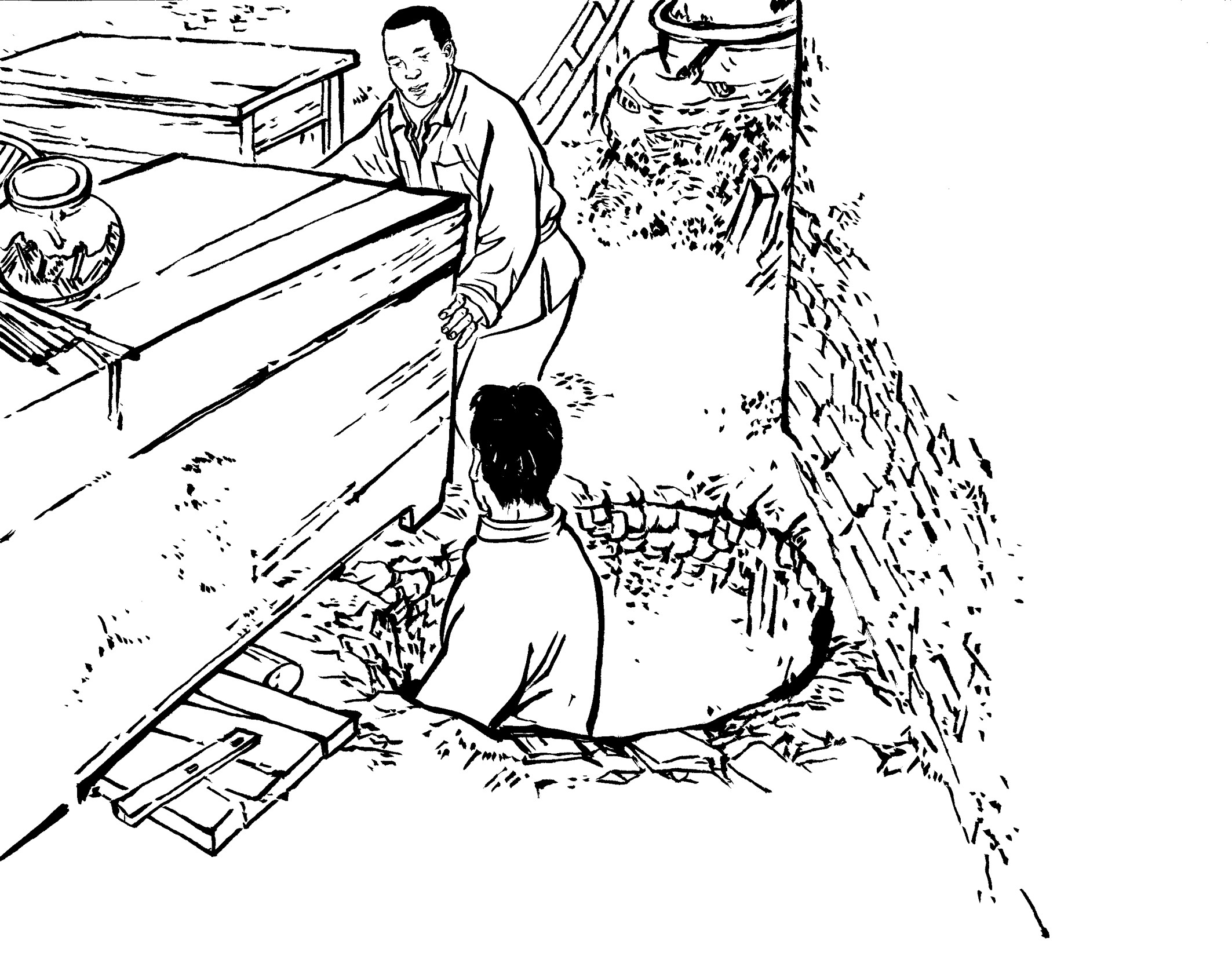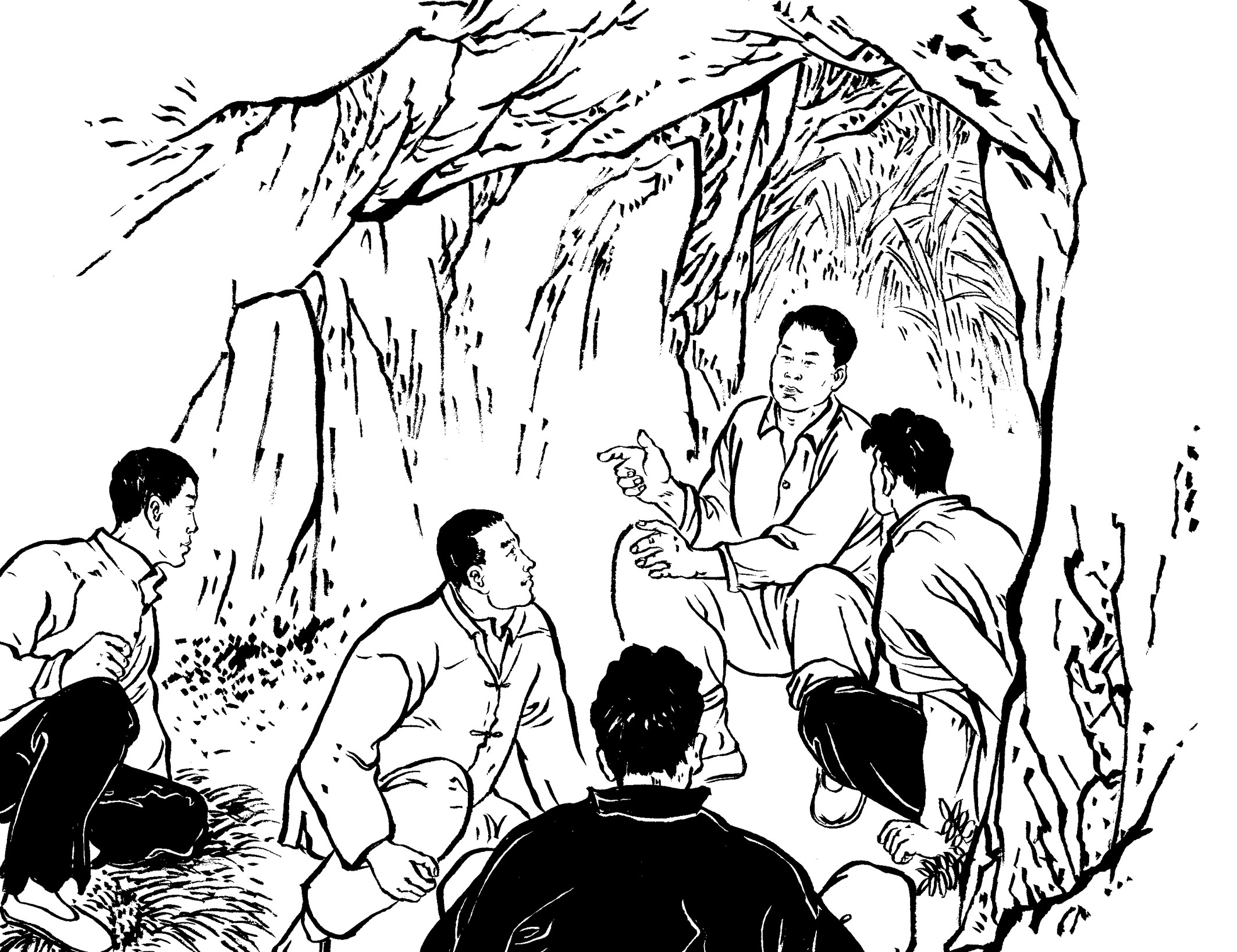 94. 王朝阳鼓励同志们化悲愤为力量,与敌特展开针锋相对的斗争,敌人来”清乡“抓人,他就带领干部、交通员进深林,住山洞、睡炭窑、喝山泉、吃野果野菜,过着野人般的艰苦生活。