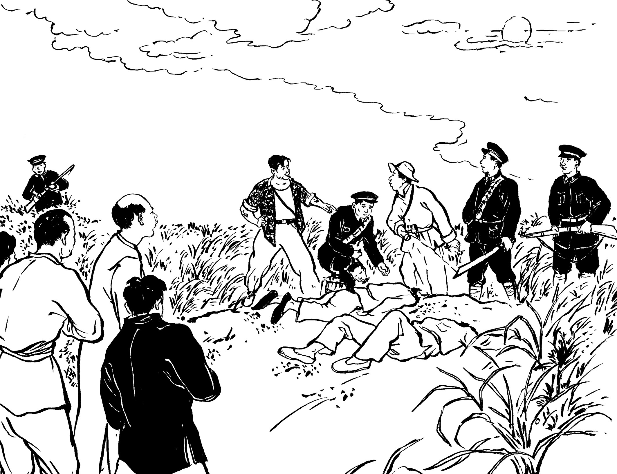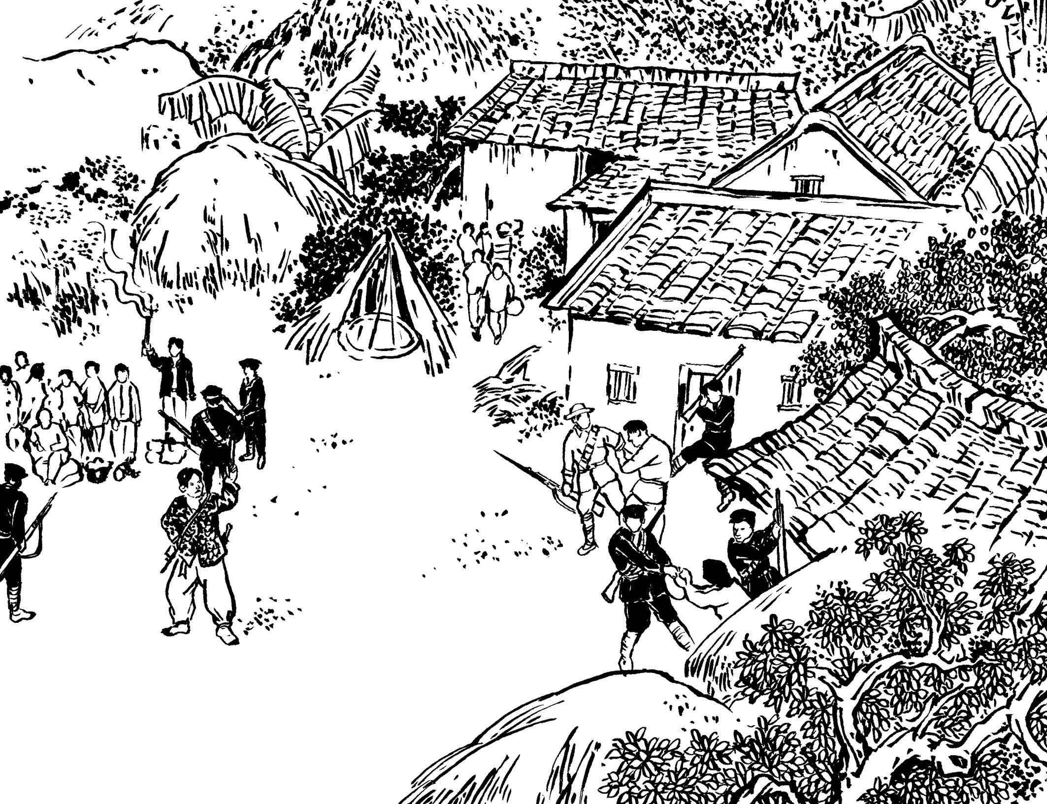 72. 听到枪声,保长黄天香和许多村民都赶来了。李煨当场宣布这些人通通以“共匪”论处,活着的统统带走。保长黄天香好说歹说,费尽口舌才救下那几个村民。