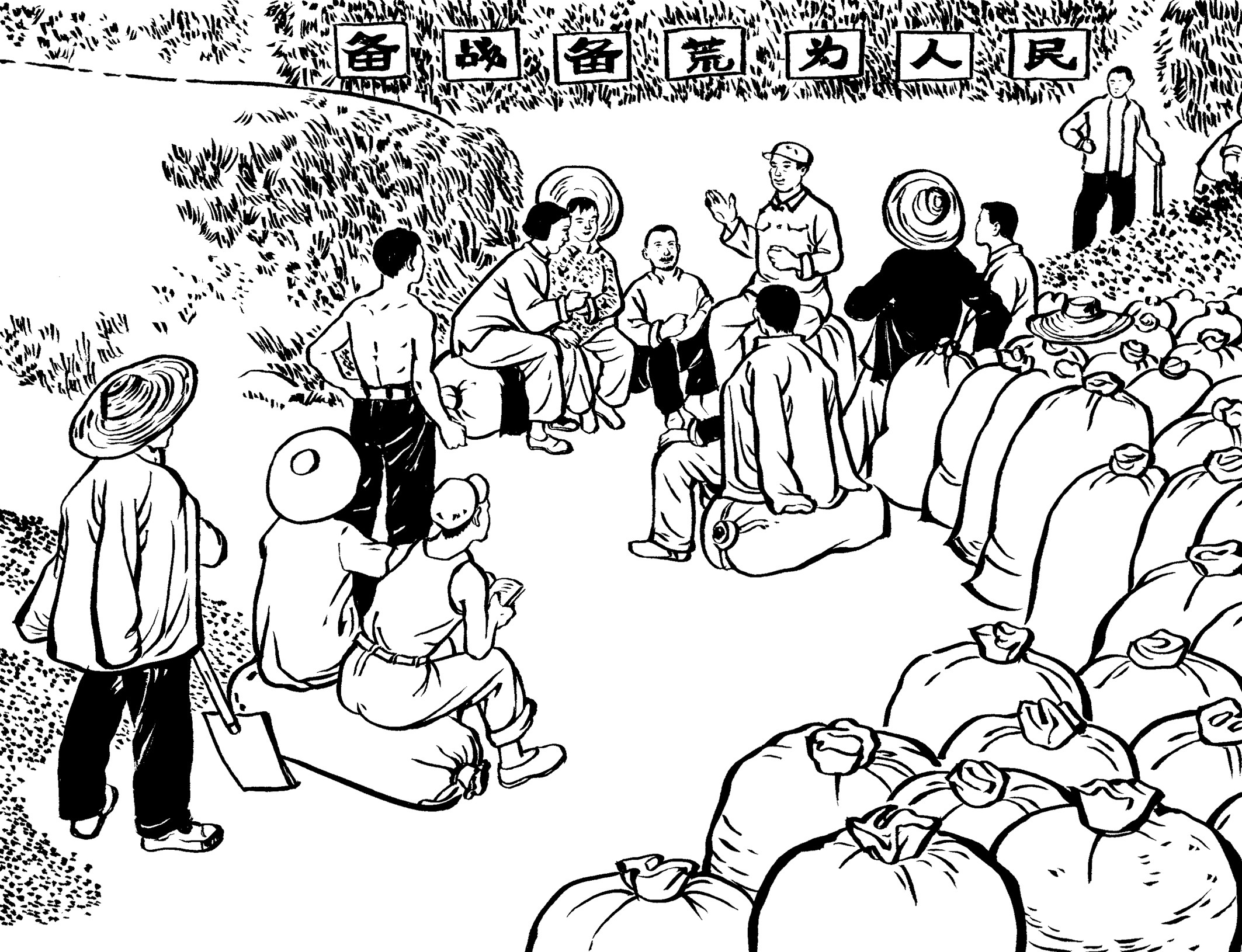 55. 王朝阳、王水法、黄章约、黄鱼、黄铨等青年人组成一个互助小组,自觉帮助劳动力薄弱的家庭抢收抢种,引导村民收藏粮食,减少缴税缴粮。