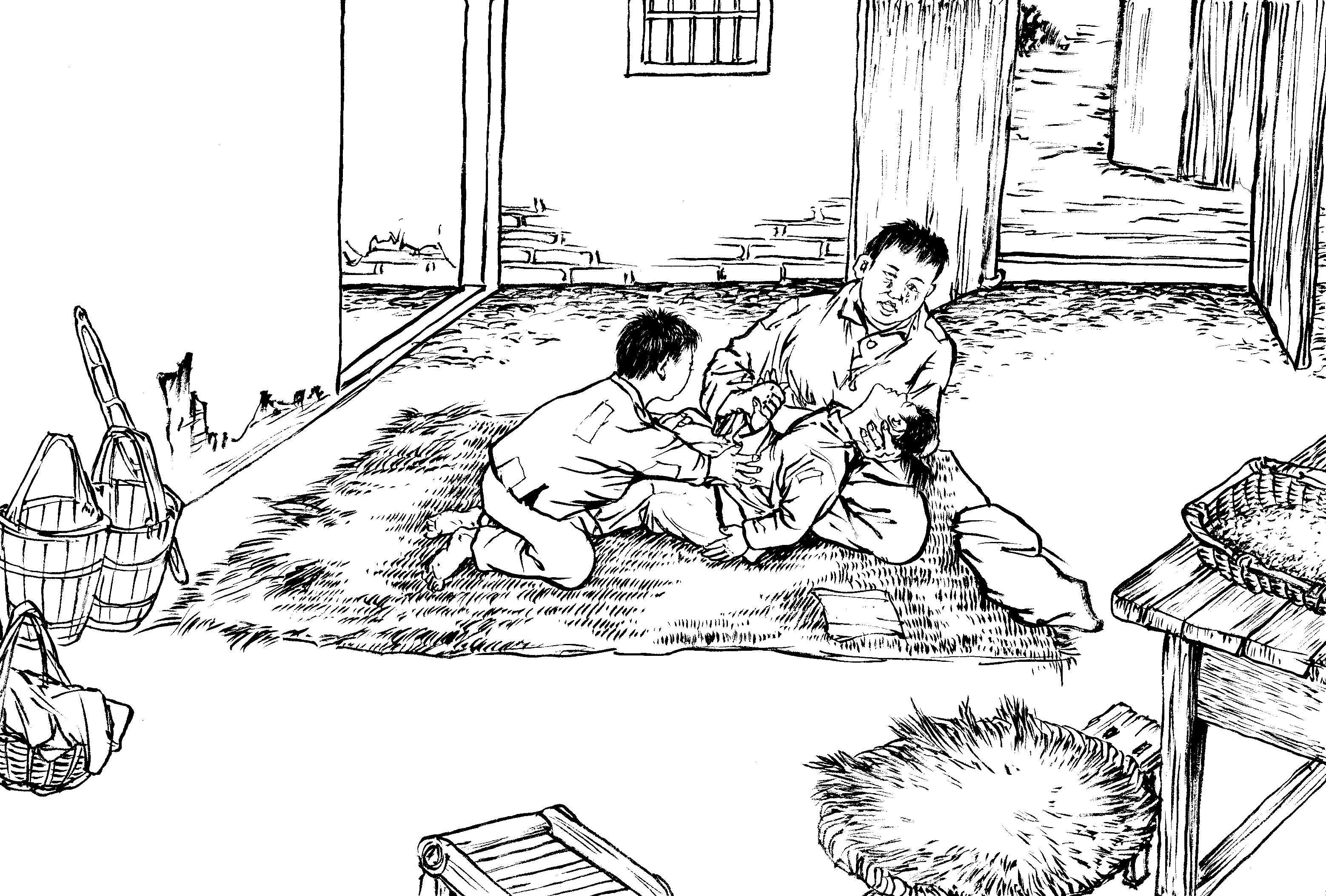 7. 掩埋妹妹之后,家徒四壁一贫如洗。康仲仁更加珍爱弟弟,珍爱这世上唯一的亲人。兄弟俩相依为命,时常到别人家里干点杂活,挣点口粮,时常到山坡、田边挖点野菜,到海滩讨点小海,度过饥荒,长年过着衣不蔽体、食不果腹的生活。