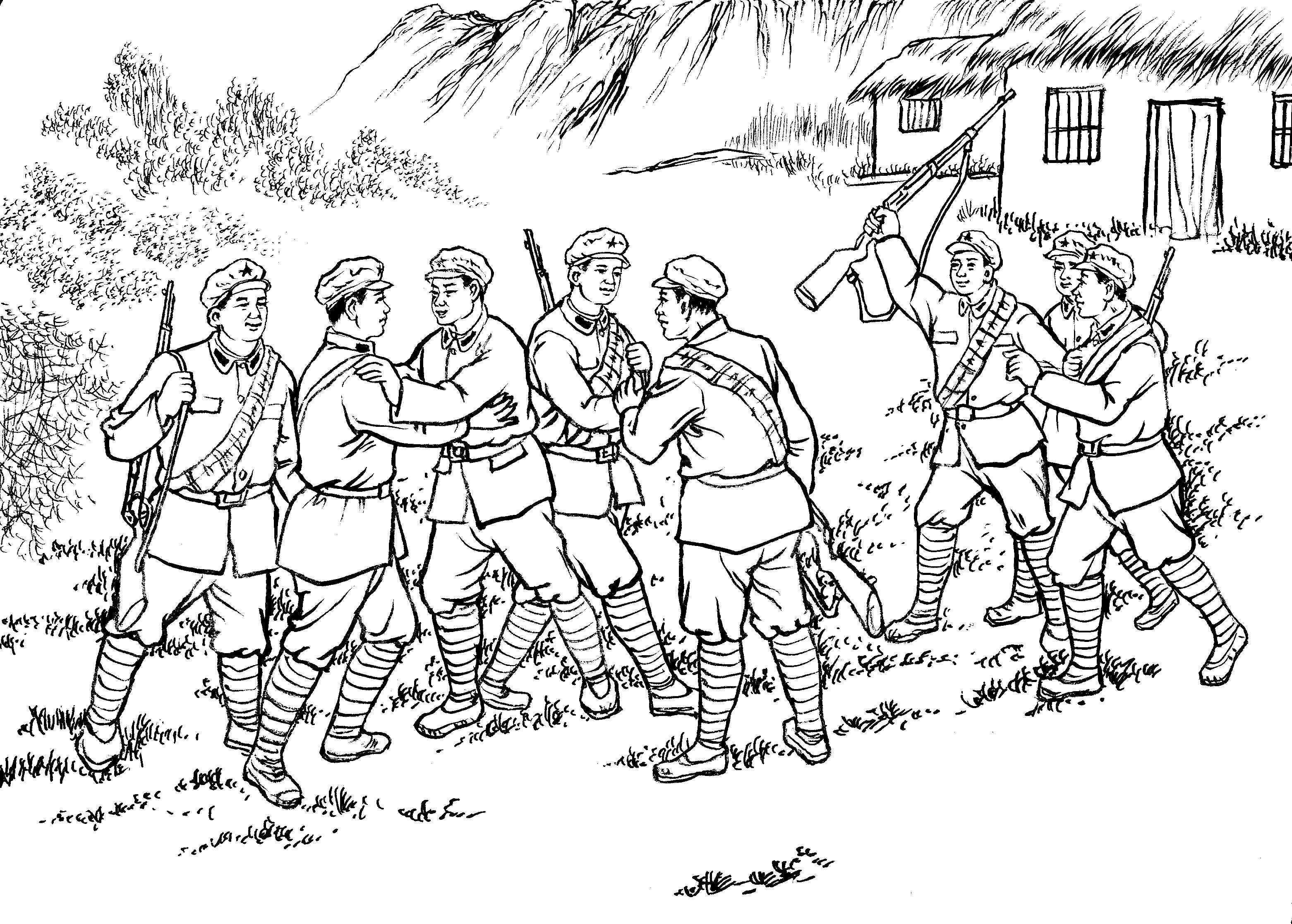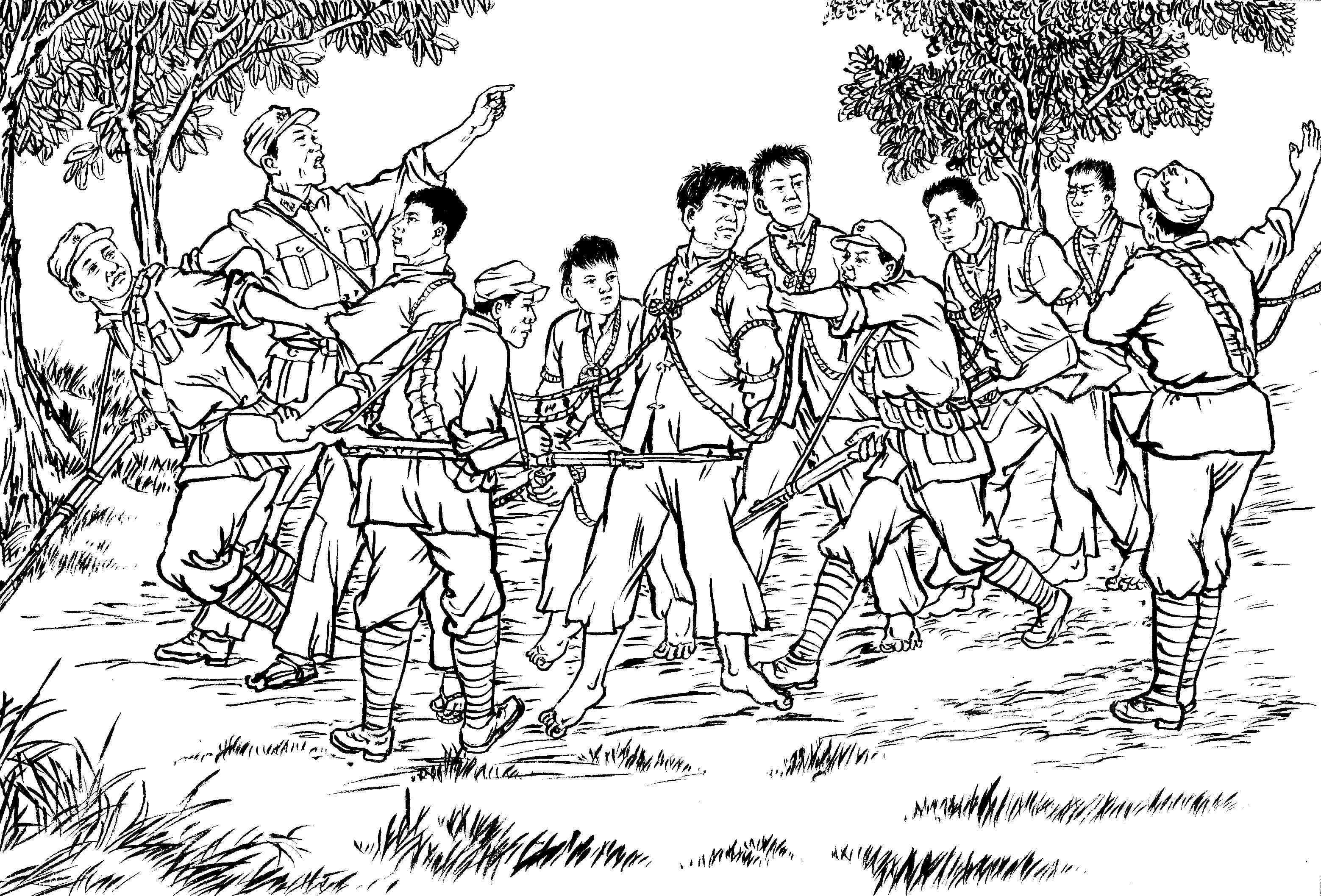 10. 由于大多数的壮丁都是被迫抓来的,听说在押送途中,他们常常被一根粗麻绳一个一个地串联捆绑着。而押送壮丁的官兵则是枪上刺刀,子弹上膛,如临大敌似地在队列的前后左右看押前行。如此当兵令人不寒而栗。