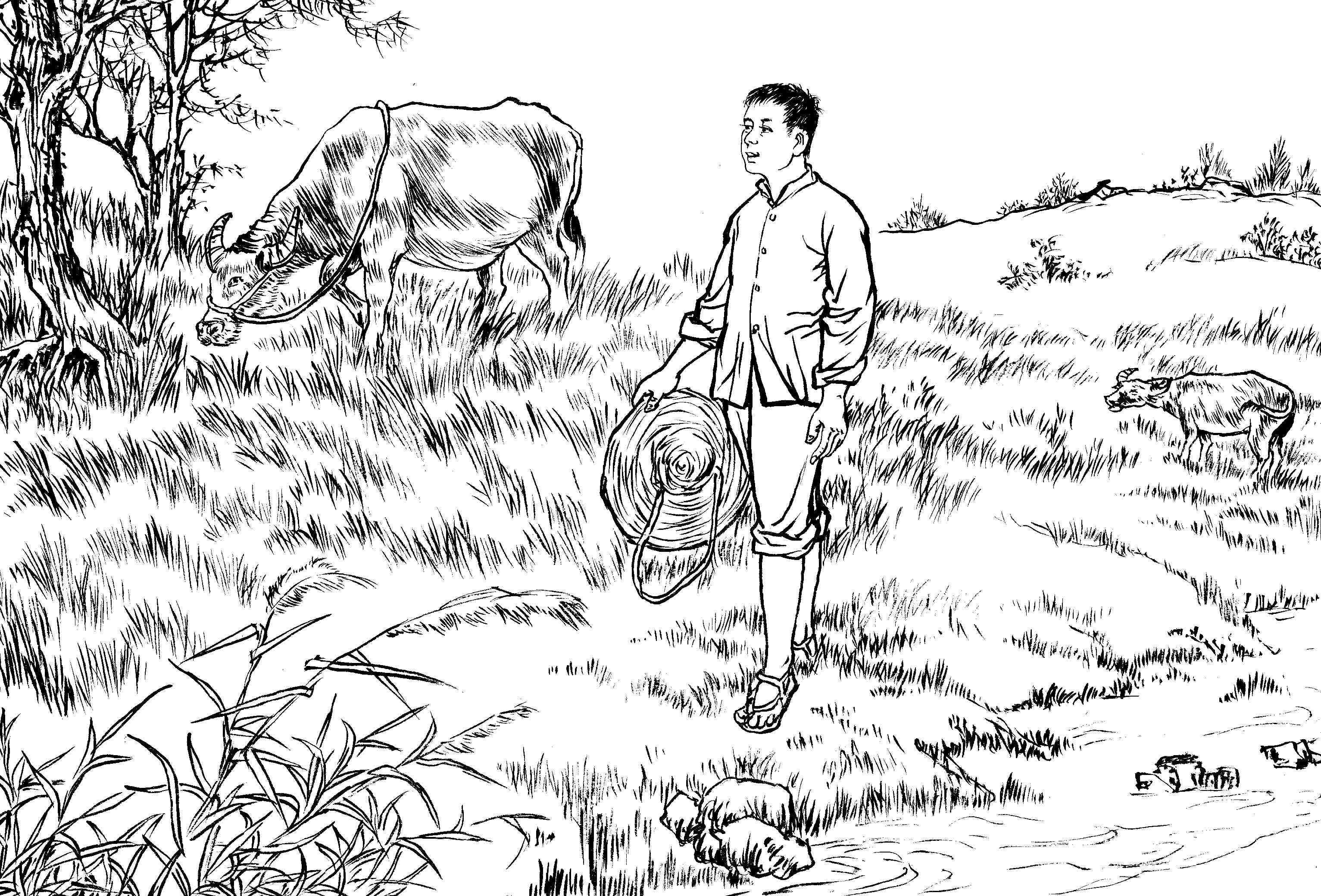 13. 歇息了5天之后,朱离带着康仲仁来到长泰县枋洋镇的枋洋村——朱离的娘家,帮她兄弟饲养水牛。水牛是农家之宝,康仲仁像亲人一样地侍候着,每天早中晚牵着水牛到水草丰美的地方喂养,其余时间帮着干点农活。山林里蚊蚋特多,经常咬得他全身红肿痛痒。