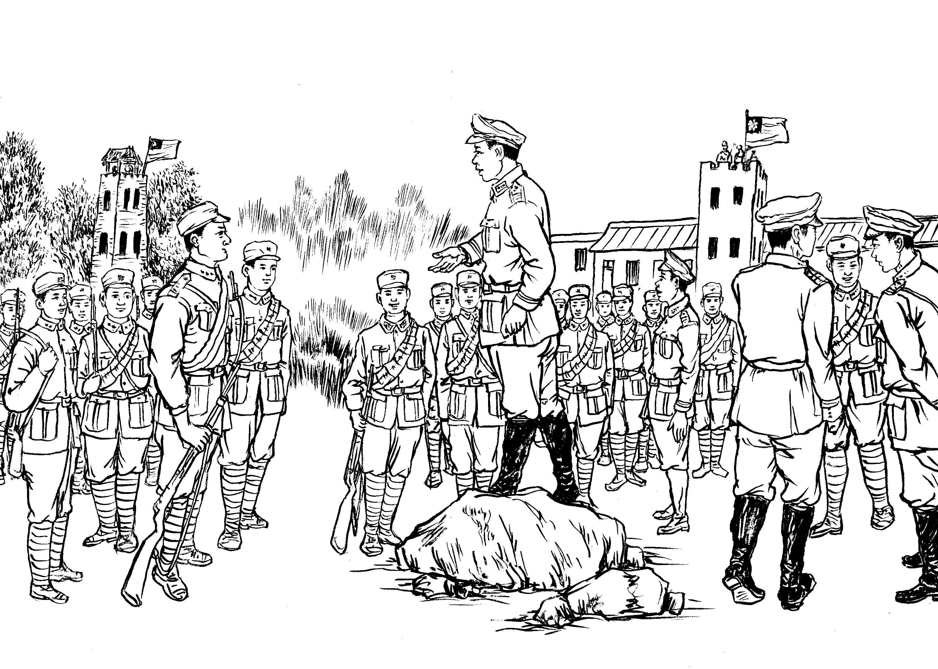 25. 那时,刚好所在团团长需要一个勤务兵,江西兵觉得康仲仁老实憨厚,竭力推荐。康仲仁第一次跟团长见面时,有点见生,微微低着头。团长严肃地说:“抬头!”康仲仁一听,吓得面如土色,心怦怦直跳。