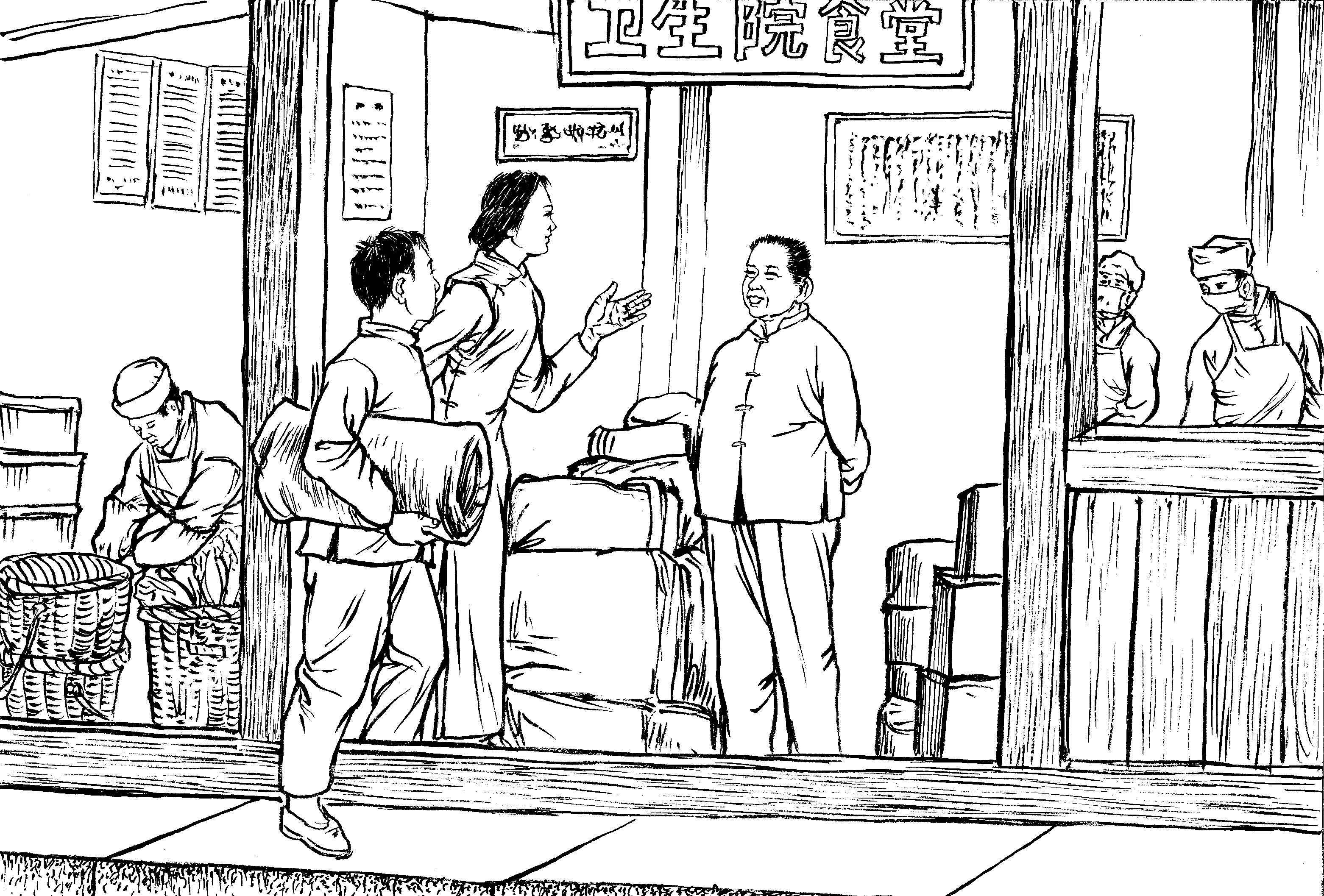 8. 1943年春天,18岁的康仲仁将弟弟安顿在堂亲家里之后,经厦门禾山人、县城三秀街保长林荣介绍,到同安卫生院的食堂里打杂。在那里,他过着比较平稳的日子。卫生院管住,每个月给60斤大米,吃剩余的,可以卖钱或带回家供弟弟生活。