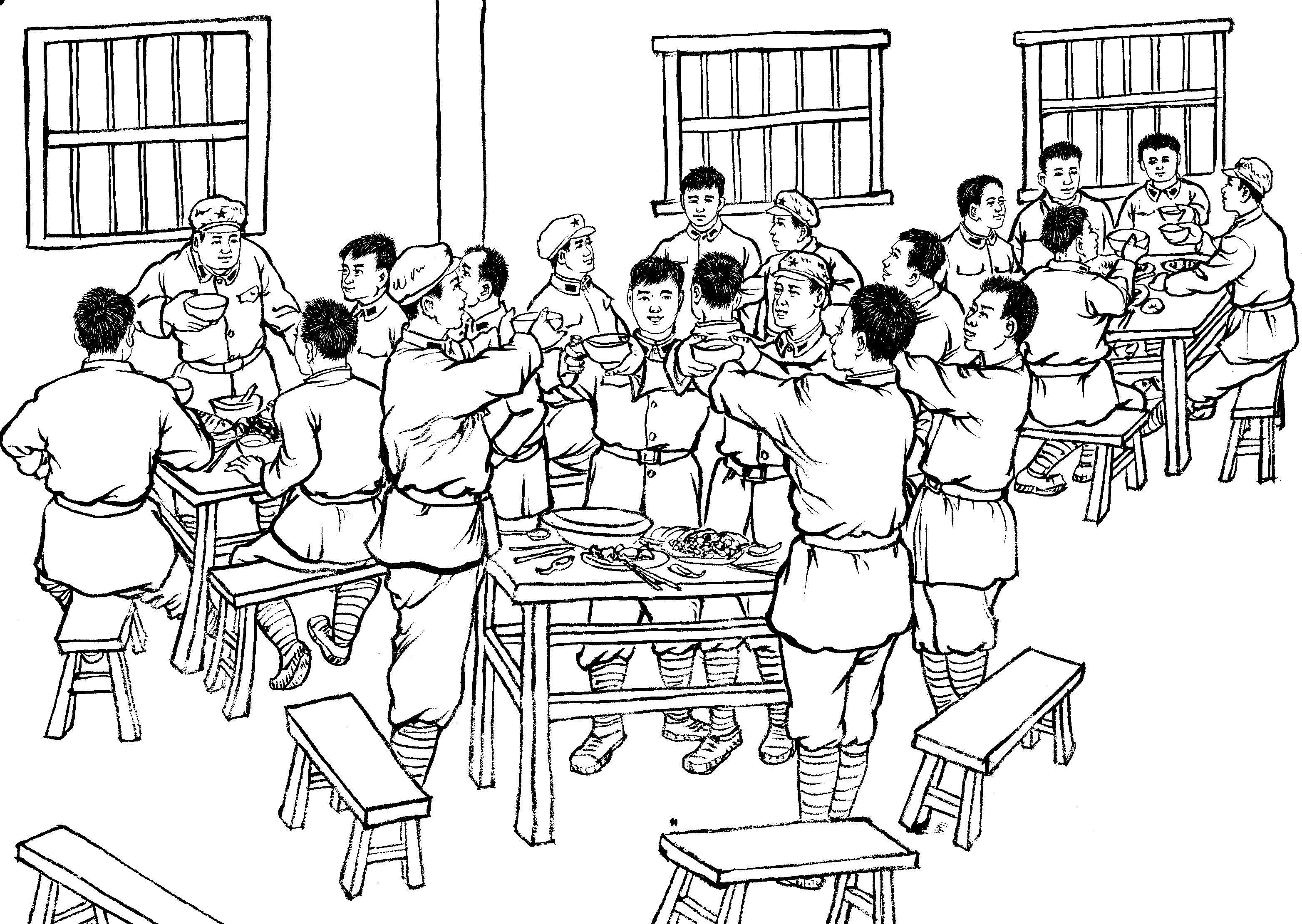 33. 那些身经百战又即将赴汤蹈火的官兵以连为单位,和船老大们一起喝了一顿“齐心酒”。一大盆的酒摆在面前,有的战士把手指咬破,鲜红的热血一滴滴地滴入酒里。然后,每人拿碗舀一点酒,全连一百多个人,怀着必胜的信心,一齐干杯。