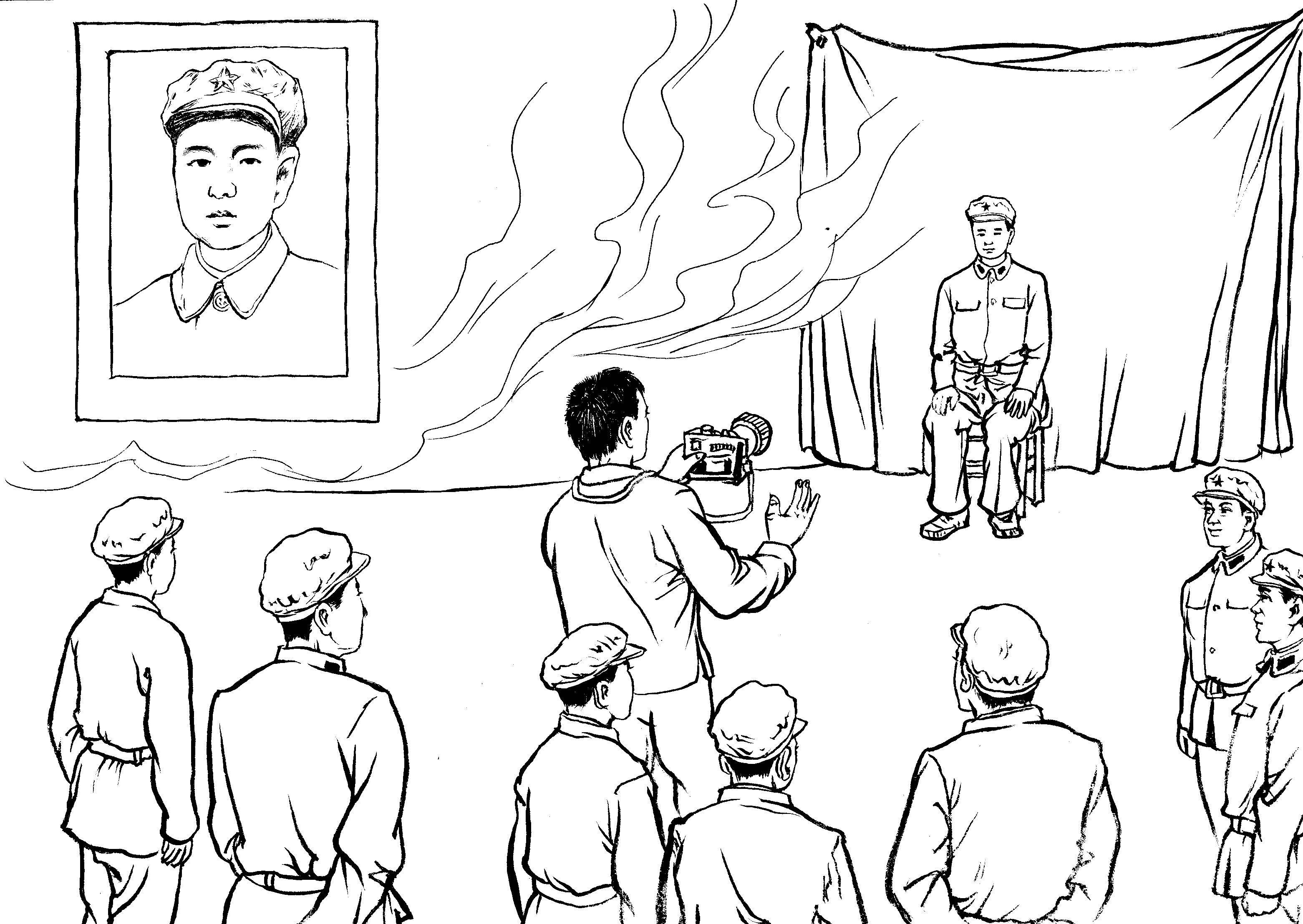 54. 城内的照相馆老板来到军营为战士们照相。康仲仁用部队补贴的5角钱照了一张一寸的人头像。这是他人生中的第一张照片,24岁,青春年华,英姿飒爽。他一直珍藏到现在。