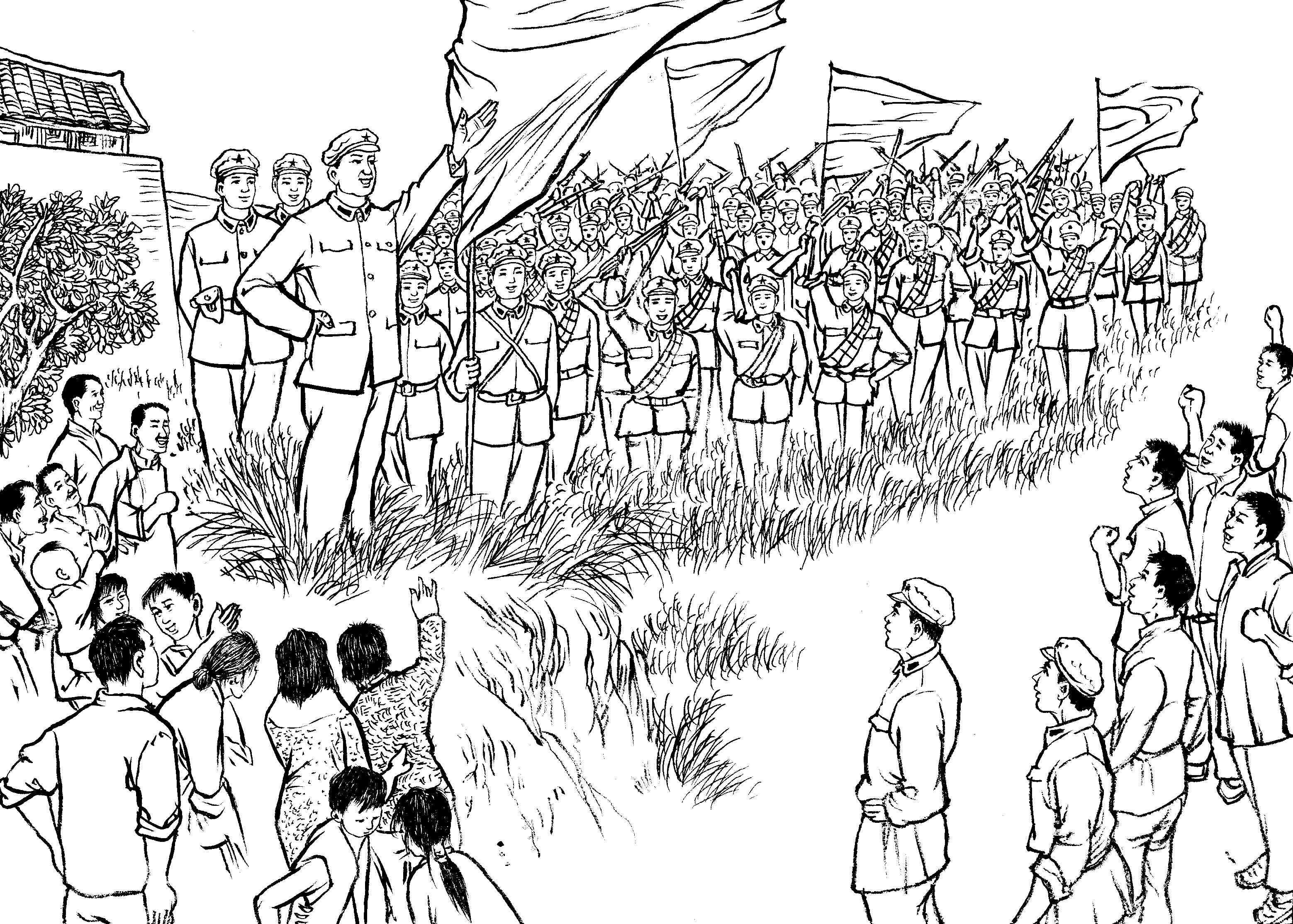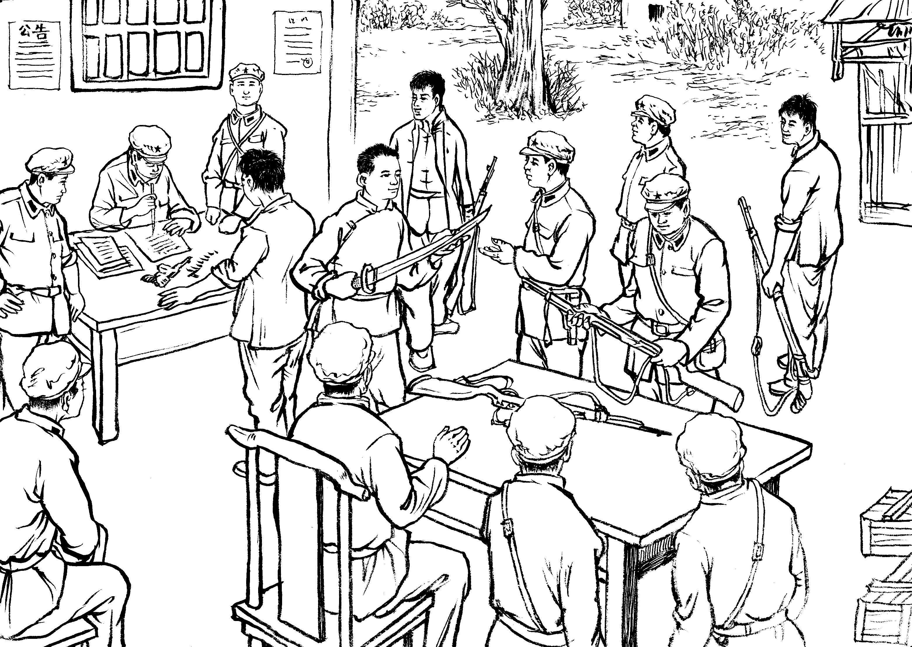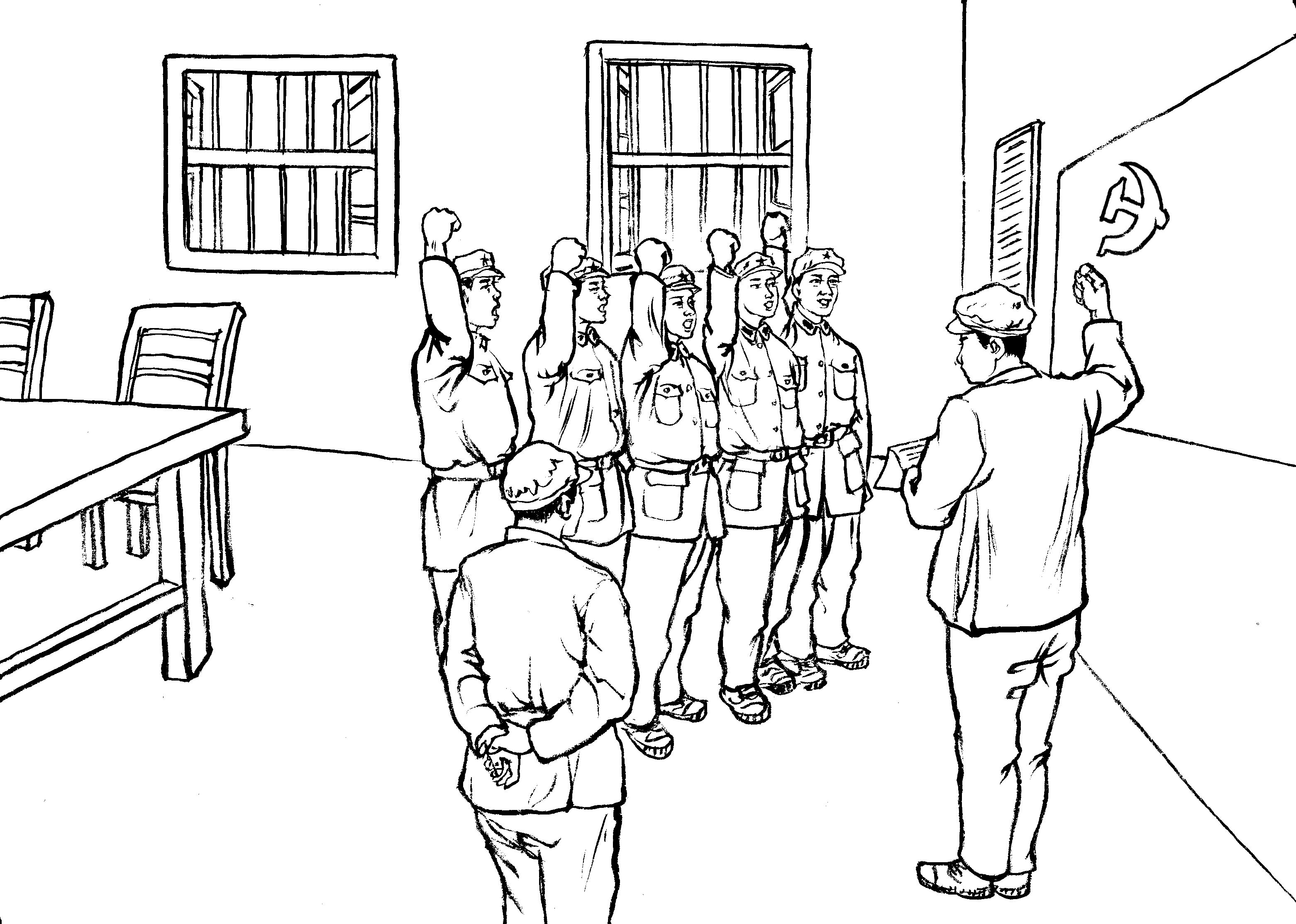 69. 当连长、指导员把康仲仁带到一面党旗跟前时,他才知道,连里要为他举办入党宣誓仪式。他简直不敢相信自己的眼睛,回想苦难的童年,回想在国民党军队那些浑浑噩噩的日子,回想浴火重生的时光……他激动得热泪盈眶。