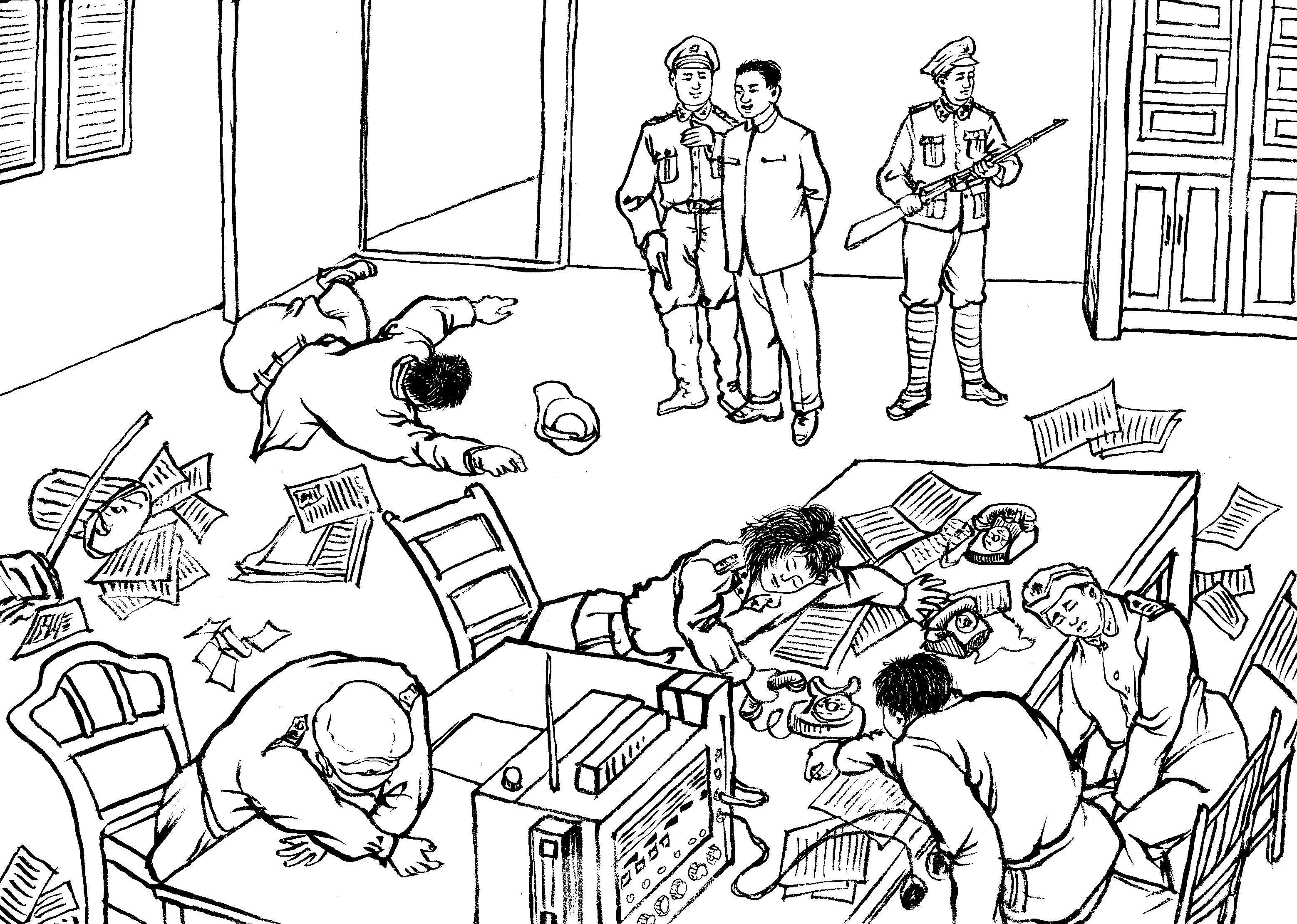 63. 5月13日至16日4个夜间,国民党军抽调44艘运输舰将驻舟山部队的12万多人全部撤到台湾。为隐瞒撤退消息,国民党兵于13日晚惨无人道地将定海电信局5名职员全部枪杀。