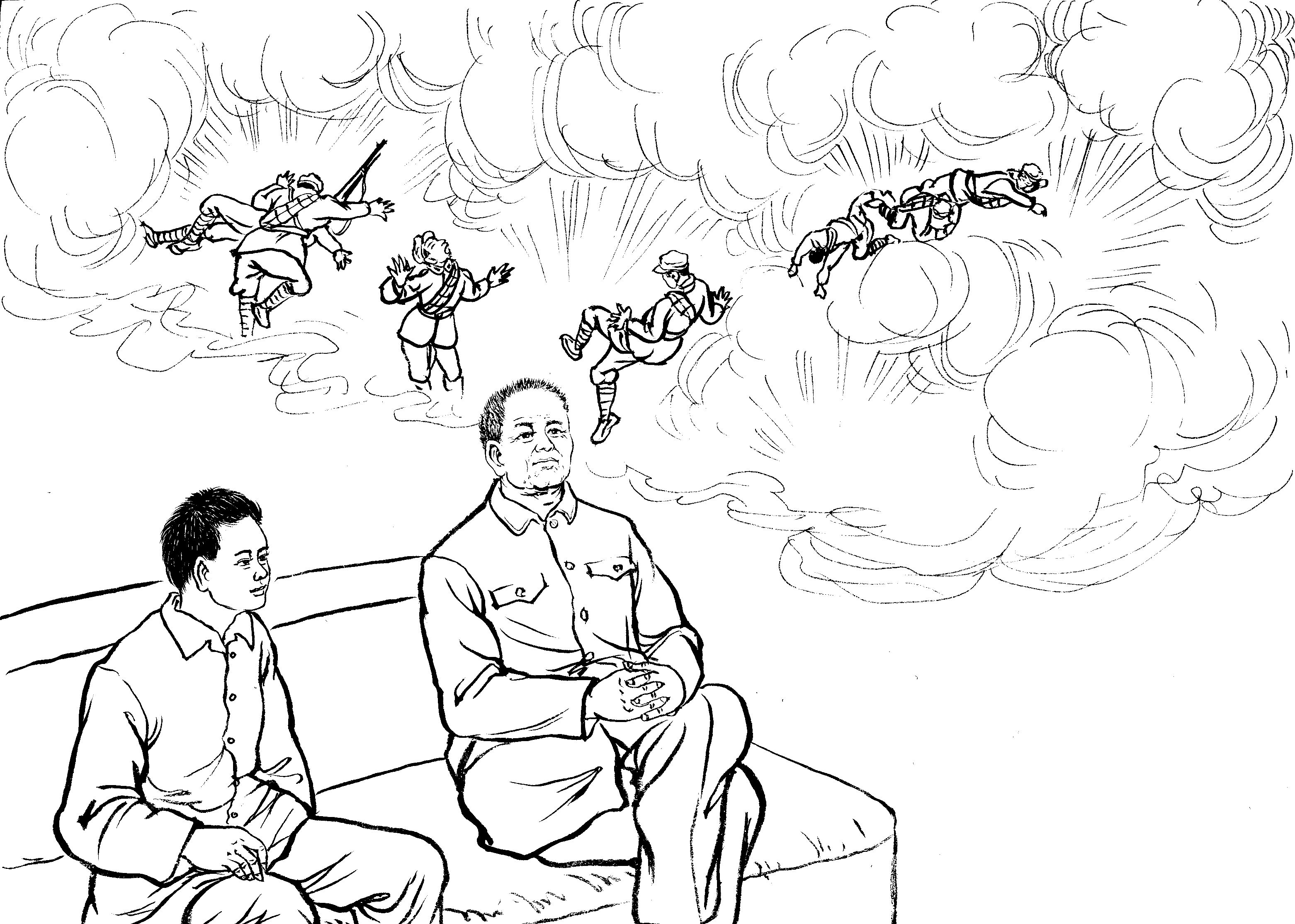 28. 1948年11月,在桐柏山脉,国民党军被解放军华东野战军、中原野战军团团包围,恶战持续3个月,国民党派飞机空投物资,兵多粮少,饥寒交迫。国民党兵有的因为抢粮自相残杀,有的无粮杀了战马充饥,有的跑到解放军阵地要饭求生。