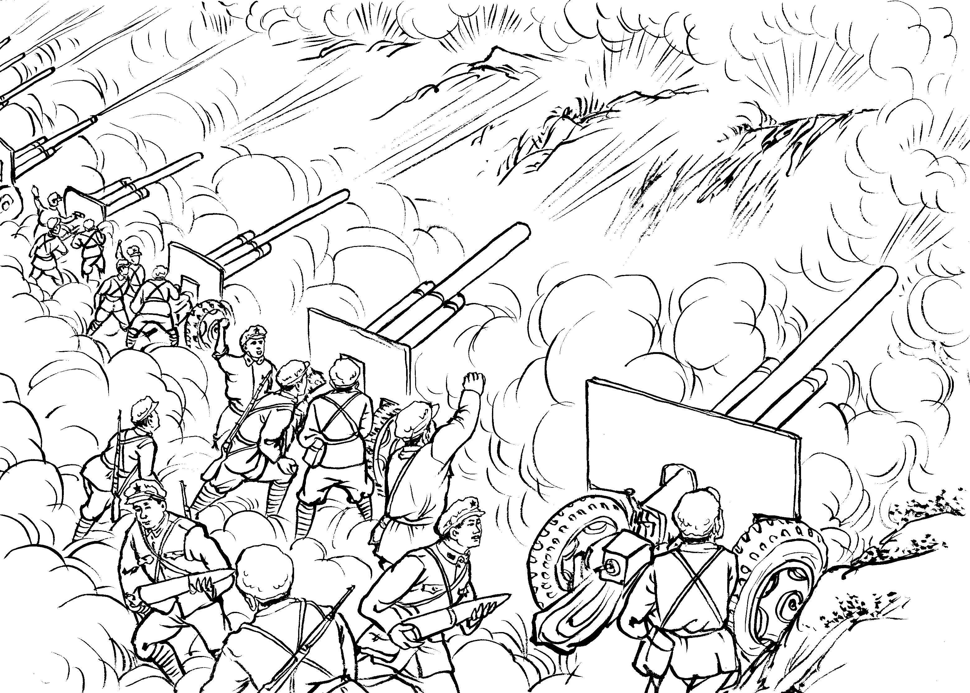 40. 船驶过江的一半,连长发出绿色的信号弹,引导江北的解放军继续往南岸延伸打炮。即便如此,江南岸敌军堡垒里的火力依然凶猛,捷克重机枪不断地喷出火舌。