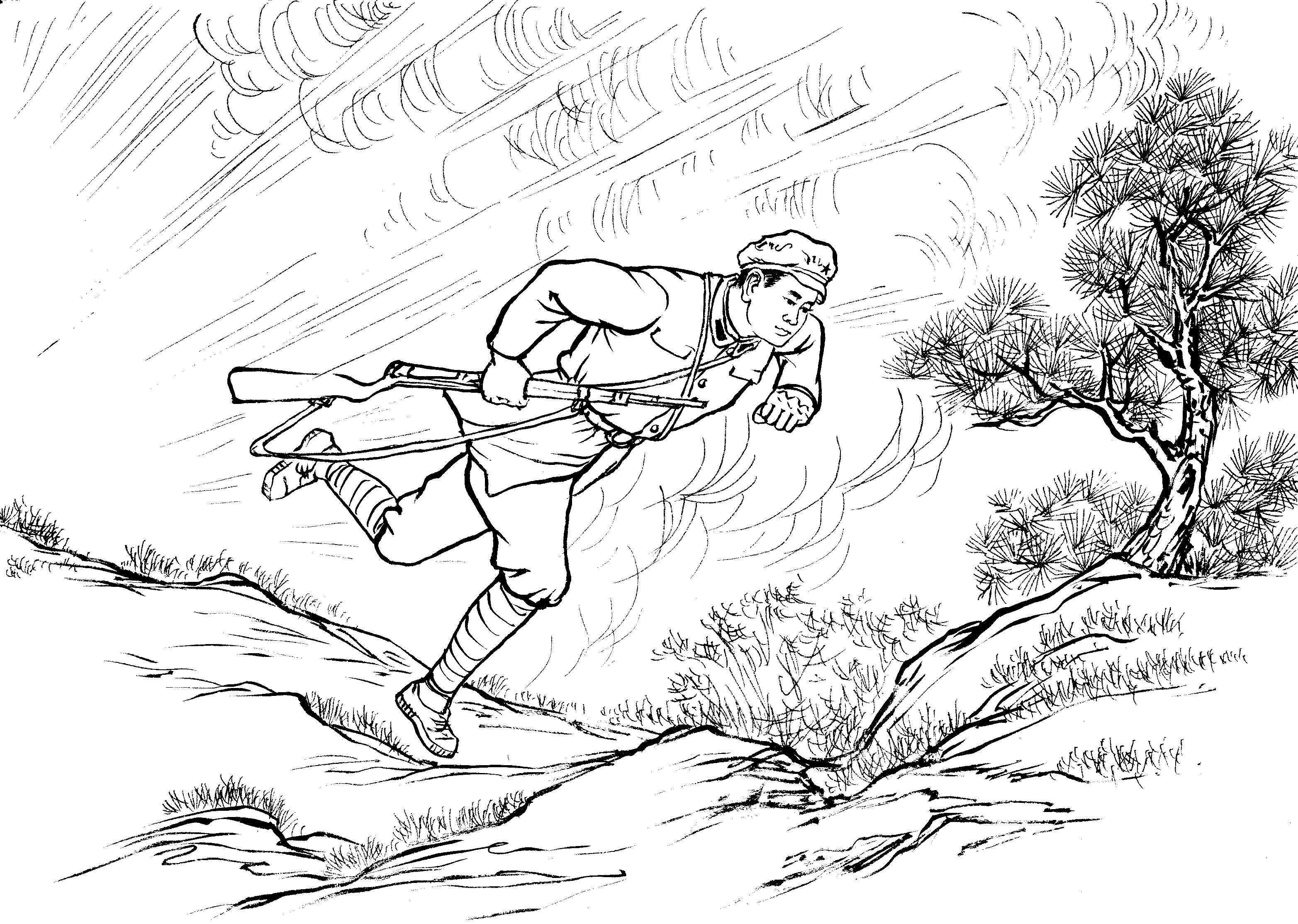 81. 由于上回遭到敌军猛烈的炮火摧残,山上的树木炸没了,战壕工事炸平了,一大段路程中,即使是一只小野兔经过也会完全暴露在敌人的视野中。康仲仁带着信件,时而隐蔽,时而往前冲,但还是被美军发现了。