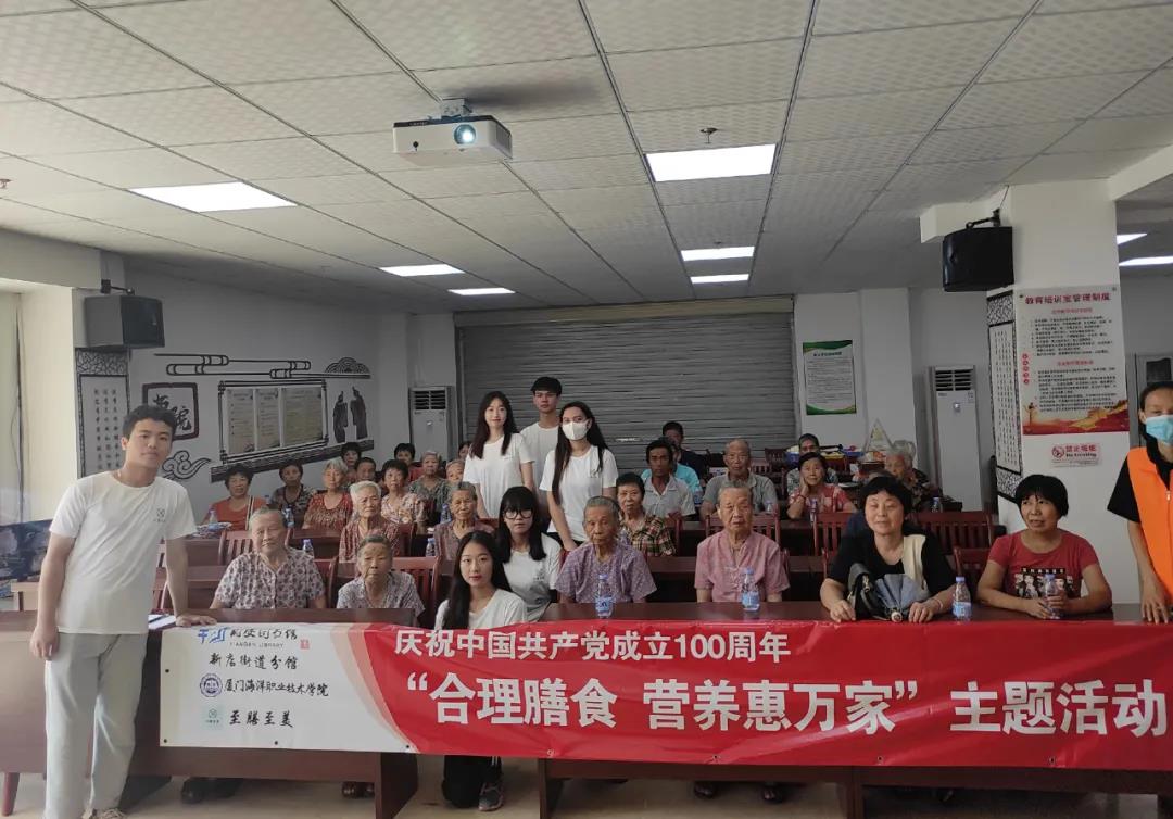 为促进青少年的身心健康成长,优化家庭饮食结构,促进膳食安排更加合理化。2021年7月14日上午,翔安区图书馆新店分馆、东兴社区与厦门海洋职业技术学院海洋生物学院“至膳至美”三下乡社会实践团队共同举办“合理膳食,营养惠万家”营养膳食健康讲座。讲座中“至膳至美”三下乡社会实践团队针对听众大部分是本地老人的情况,贴心的改用闽南语耐心的为老人家讲述营养膳食搭配的知识,并普及夏天膳食应注意事项。活动最后,“至膳至美”团队邀请参加讲座的听众到台上搭配膳食,并对其进行指导。本次活动,不仅让“至膳至美”三下乡社会实践团队可以在传递知识的同时锻炼自己,也让在场的听众更加了解膳食营养的搭配,受益匪浅。新店分馆 许雅滨活动开始,老师通过党史宣讲、观影活动、现场制作手工等形式新颖多样、精彩纷呈的党史学习教育活动,引导孩子们知史爱党、知史爱国,让孩子们对党史精神有了更清晰的认知,对党史有了更深刻的理解。