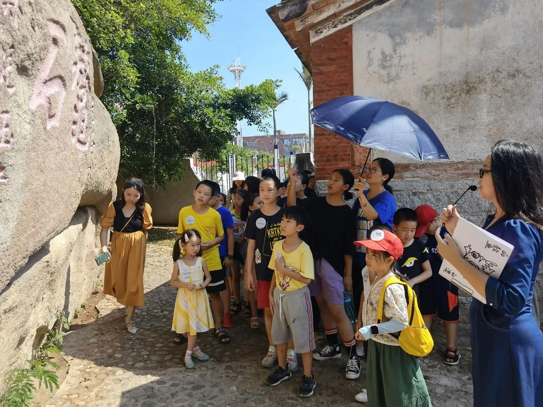 从榕树下走过,望着高大且蓊郁的大树,老师向孩子们科普了榕树气根等相关知识,让孩子们深刻认识到大榕树爷爷有着长长胡须的奥秘。随后,大家一路前行来到了澳头另一处标志性参观地——鳌石。凝望来自178年前,一代伟人苏廷玉的题字,感受浓浓的澳头历史文化。