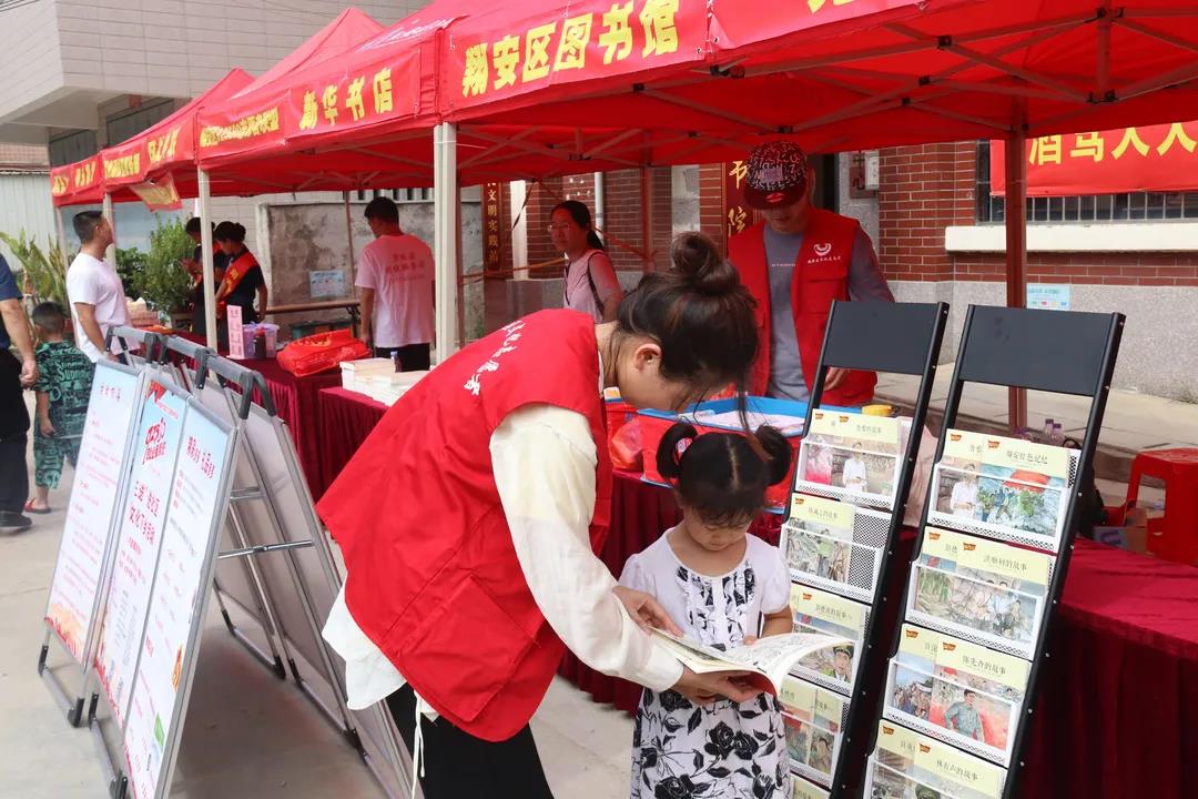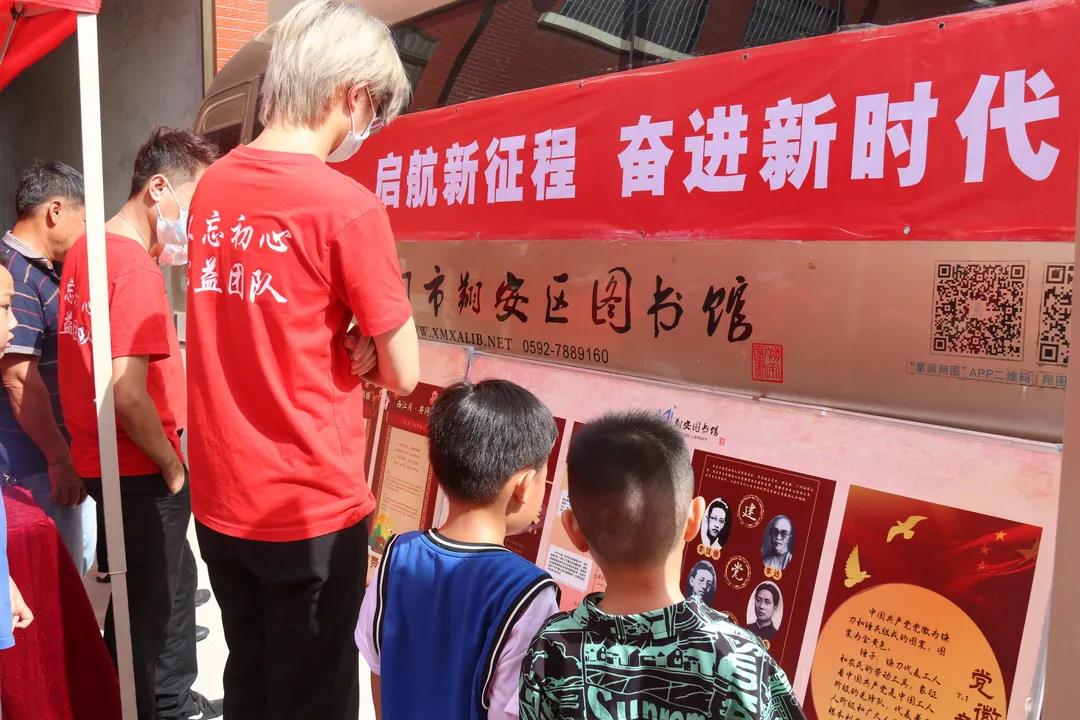 区图书馆组织文化志愿者开展了现场办证借书、图书馆宣传、《中华人民共和国公共图书馆法》宣传、《中华人民共和国公共服务保障法》宣传、“峥嵘岁月 百年荣光”毛泽东诗词展览、垃圾分类宣传、反电信诈骗宣传、百种好书推荐、创业指导丛书推介等,并精心设计了关于翔安民俗的灯谜,倡导全民阅读,推动书香翔安建设,受到了广大社区居民的热烈欢迎和积极参与。