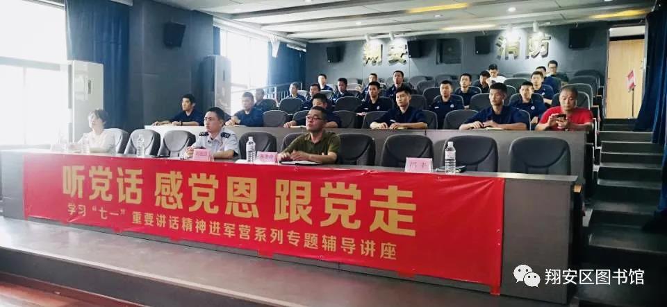 7月28日,翔安区图书馆在厦门市消防支队翔安区大队举办了听党话、感党恩、跟党走——学习“七一”重要讲话精神进军营系列专题辅导讲座,邀请了华侨大学社会科学研究处处长,哲学与社会发展学院教授、博士生导师薛秀军主讲,厦门市消防支队翔安区大队干部聆听了讲座。