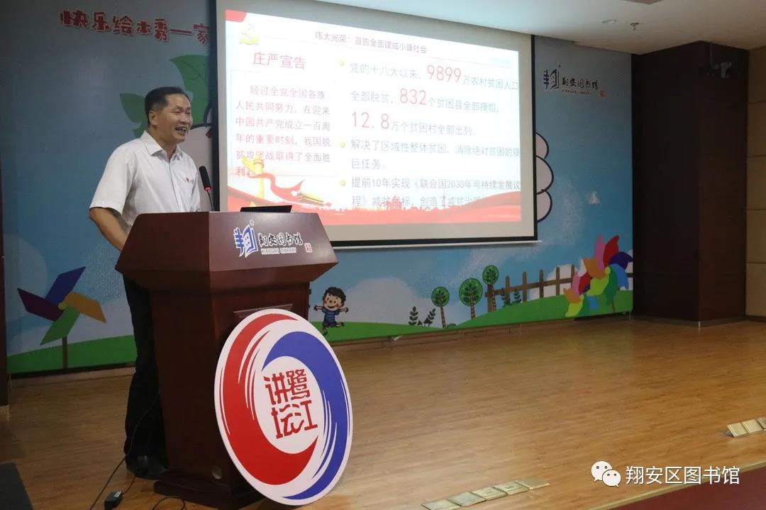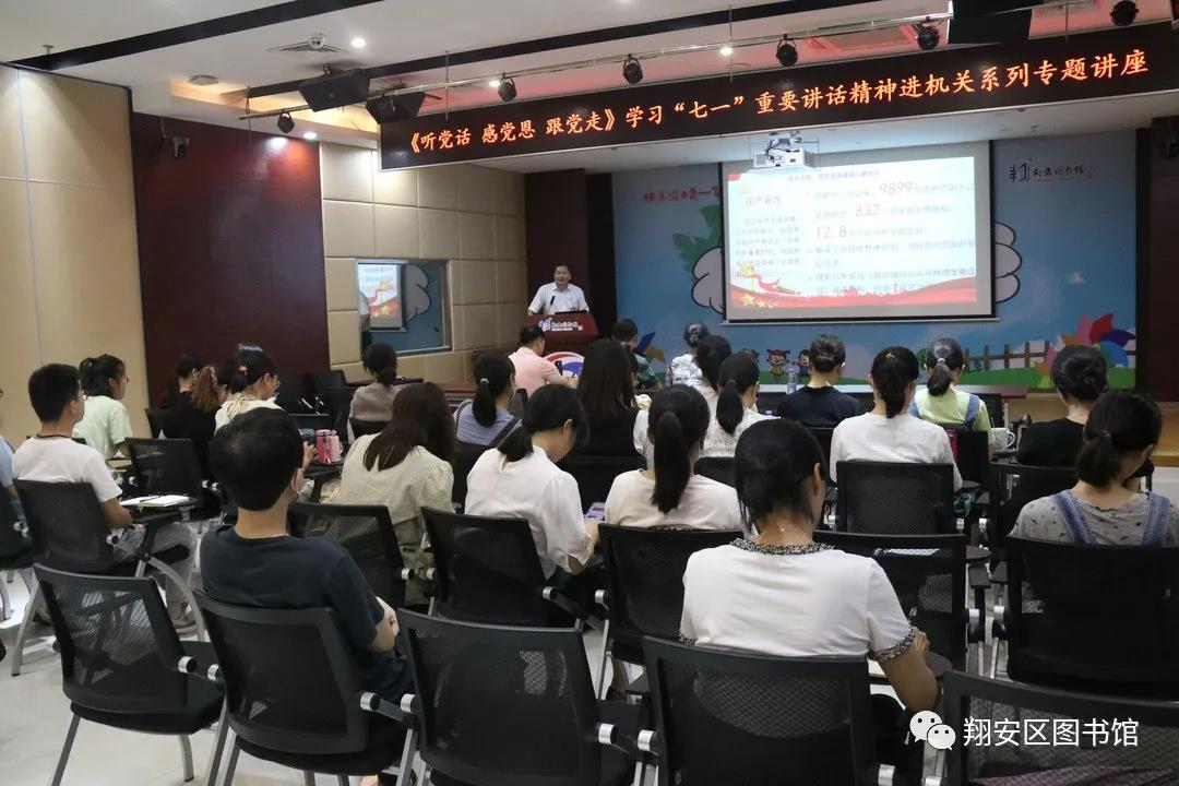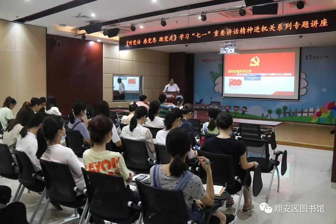 为深入学习贯彻习近平总书记在庆祝中国共产党成立100周年大会上的重要讲话精神,激励和引导机关干部和馆员更好地听党话、感恩党、跟党走,把思想和行动统一到重要讲话精神上来。7月22日上午,集美大学马克思主义学院院长肖仕平教授到翔安区图书馆开展《百年恰是风华正茂——学习习总书记在庆祝中国共产党成立100周年大会上的重要讲话精神》的讲座。