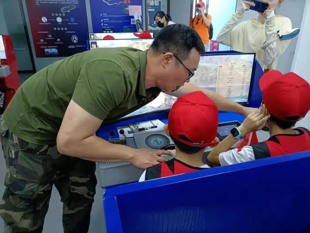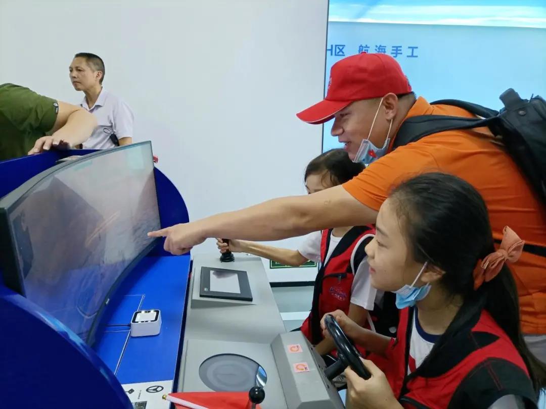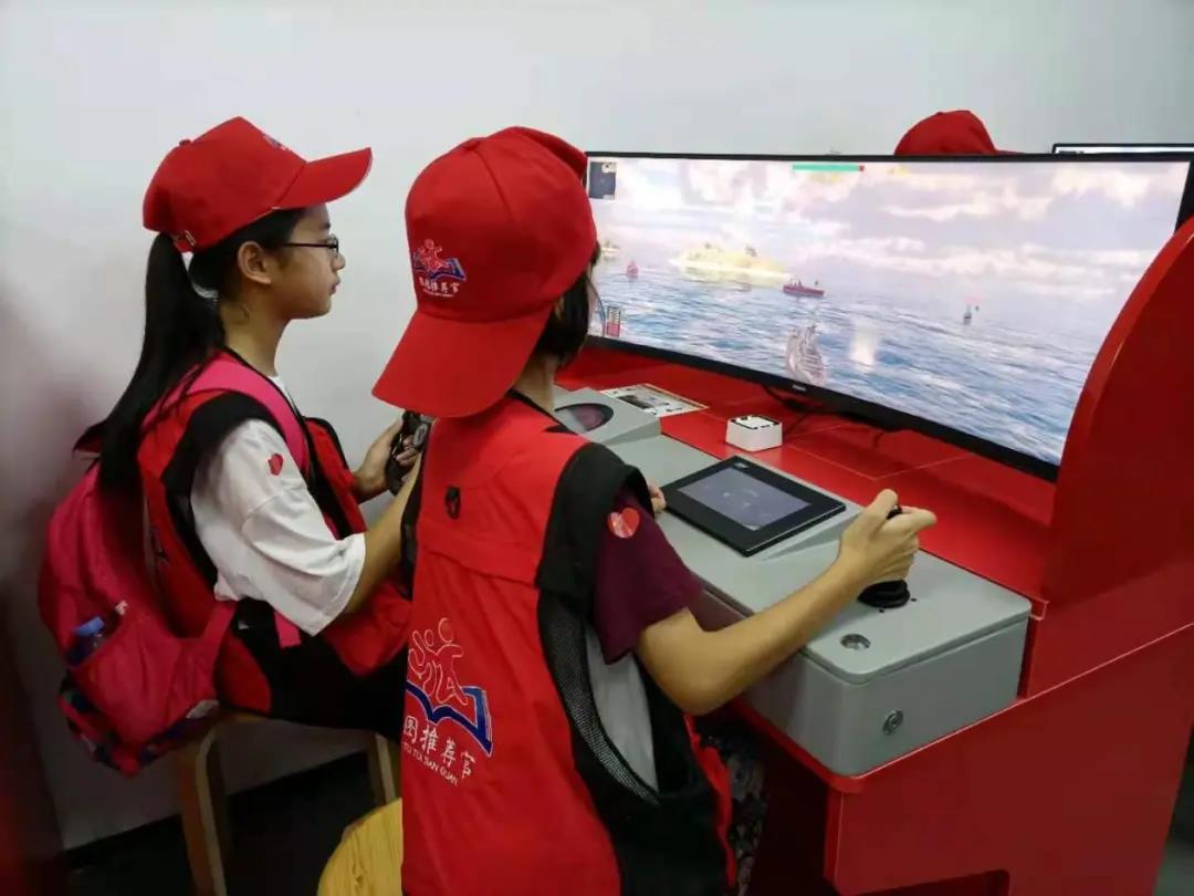 在老师的讲解下动手进行航海航行操作(红蓝对抗和船桥体验),惹得小读者们好不欢快。