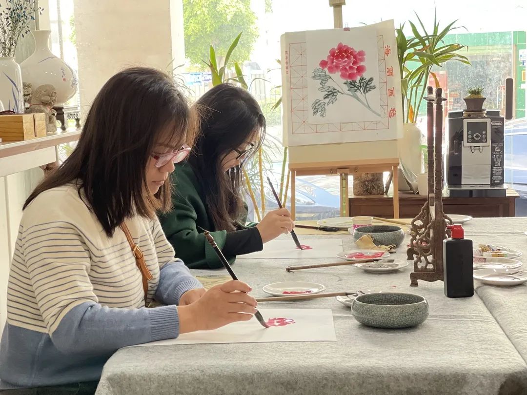 活动中,大家在优美的音乐声中,学画国画,品茶,喝咖啡,聊艺术的话题,感受中国传统文化的源远流长、博大精深,更让他们学会热爱自然,热爱生活。