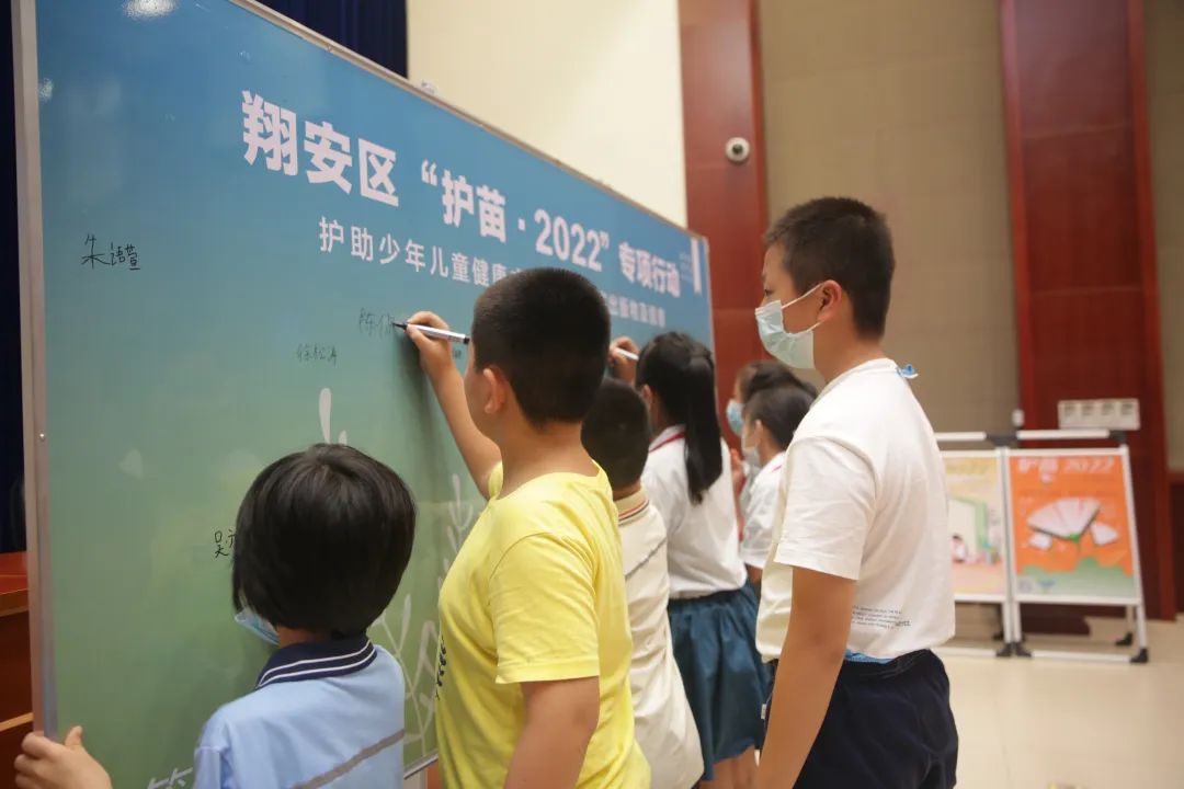 在老师的指导下,学生们一起动手制作“护苗·绿书签”。以书签为凭,在学生们的心中留下多读书、读好书的种子。最后,学生们还共同签署护苗行动倡议,许下绿色阅读、健康成长的诺言,以多读书、读好书来丰富暑假生活。